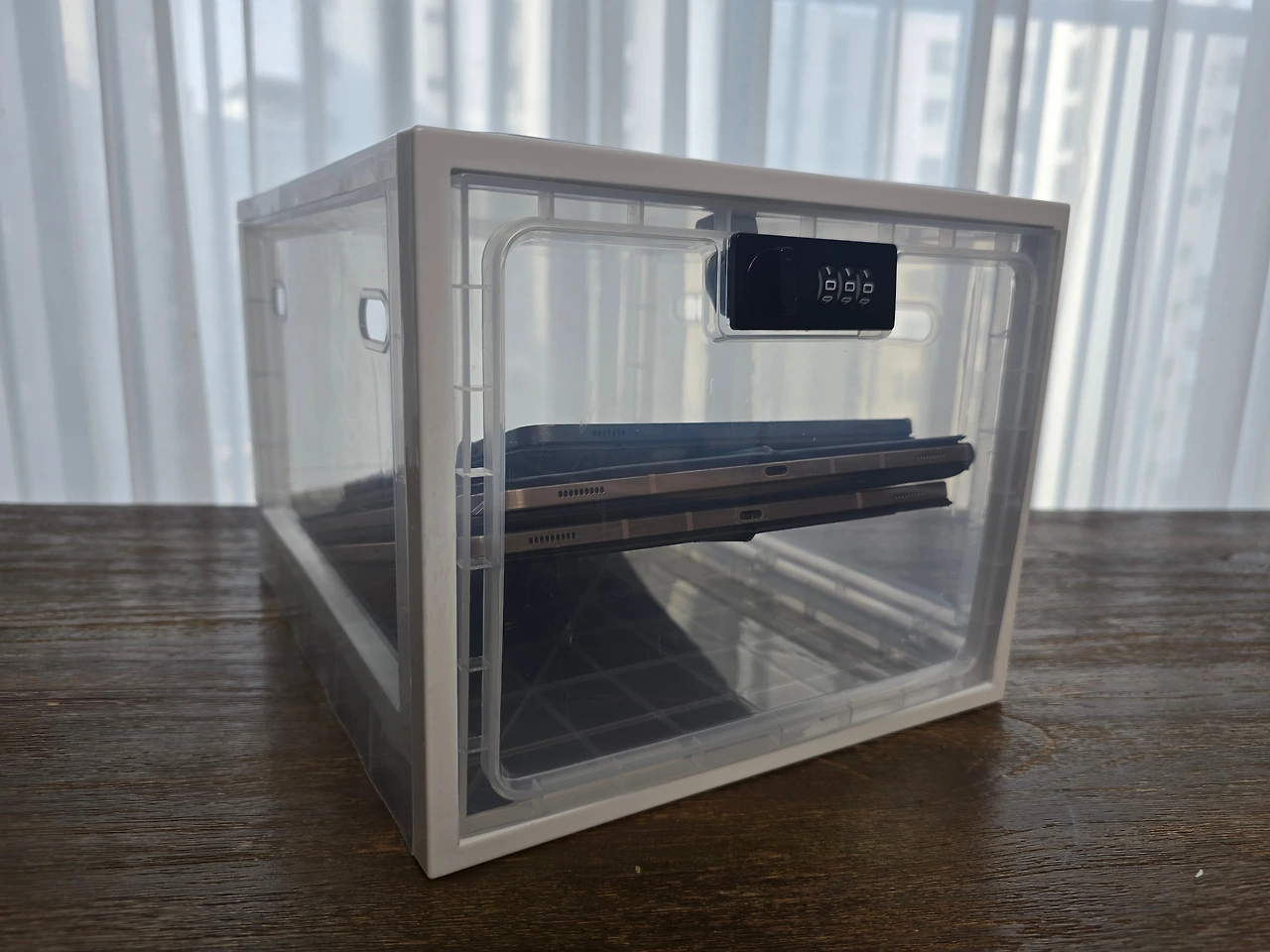 휴대폰 감옥이라는 게 있더라. (대한민국에는 없는 게 없다.) 이 네모난 상자에 집안에 있는 패드를 모두 넣고 세 자릿수 비밀번호를 설정했다. 안에 담긴 것이 훤히 들여다 보이게 투명한 상자를 골랐다. 예상대로 아이들은 명백히 감옥에 갇힌 패드를 보고 보물 찾기를 멈추었다. 체념한 것이리라. 그날 밤 어찌나 잠이 잘 오는지 꿈도 안 꾸고 잤다.