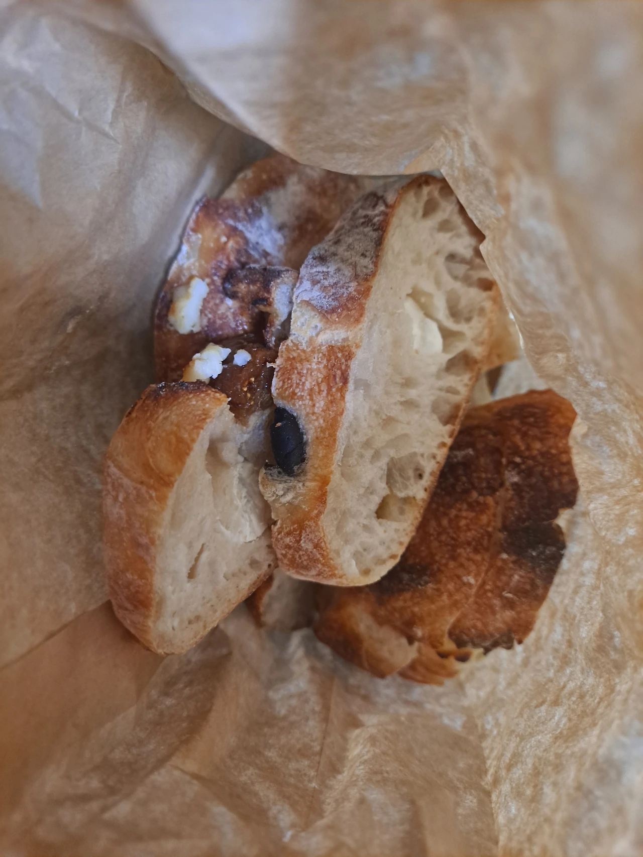 "무화과가 정말 먹음직스럽게 올라가 있네요.", "맞아요. 저도 그래서 무화과로 골랐어요.", "진짜 맛있을 것 같아요." 저는 단호박 깜빠뉴, 팀원은 무화과 깜빠뉴를 고르고 포장을 기다리며 다른 손님까지 셋이 대화를 나누게 됐어요. 그런데 알고 보니 나중에 온 손님도 무화과 깜빠뉴를 사고 싶으셨는데 마지막 남아있던 걸 팀원이 먼저 선택해서 살 수 없게 된 상황이더라고요. 안타깝지만 어째요.