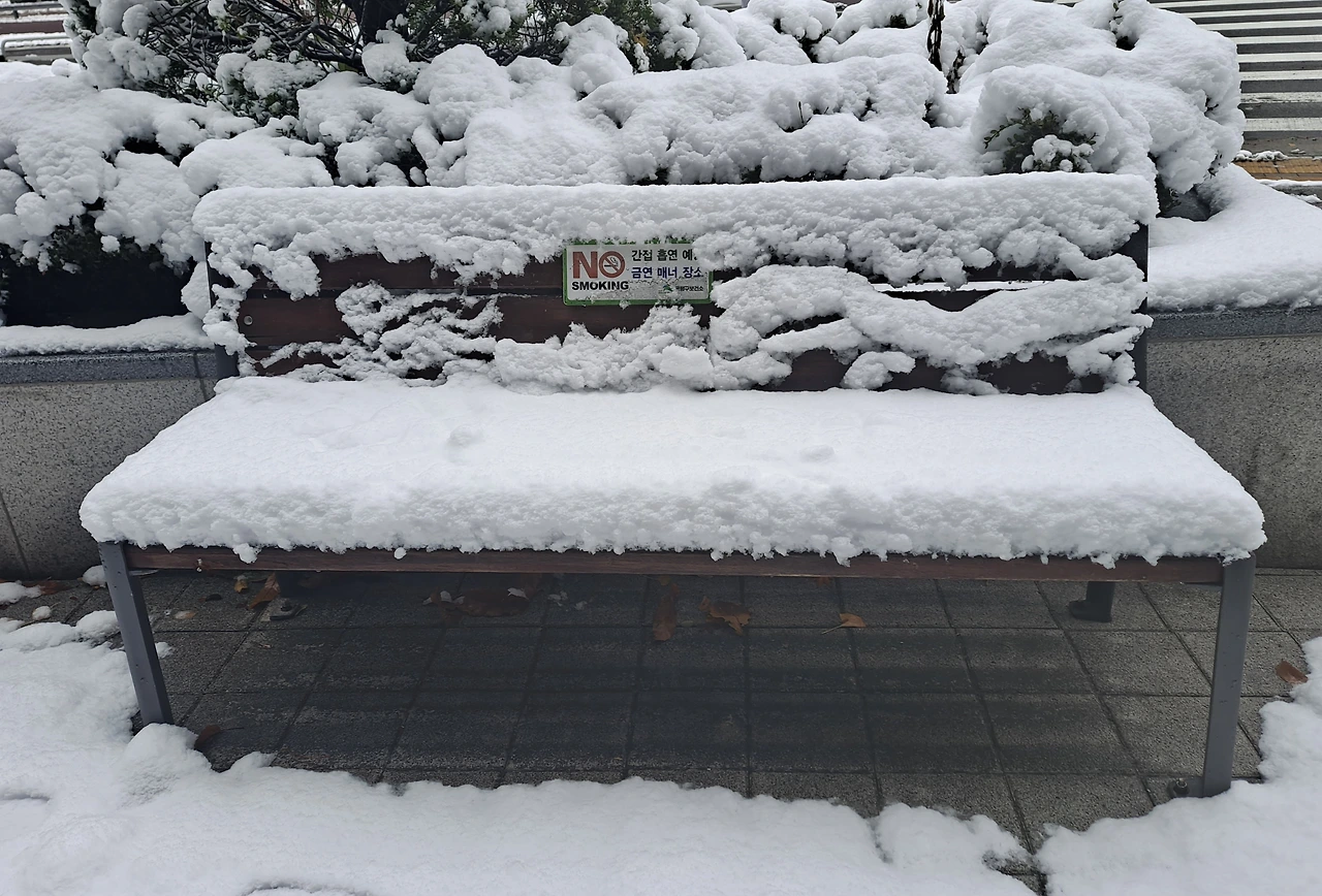 한 번에 하나만 집중하겠다던 다짐 무색하게 오늘도 멀티태스킹 모드였으나 오가는 버스에서 만큼은 휴대폰 대신 창밖을 바라보며 하룻밤 사이 겨울왕국이 된 세상을 구경했습니다. 신호등 위나 나무 가지 위에도 날렵한 모양으로 소복소복 가지런히 쌓인 눈은 마치 폭신한 겨울이불 같아서 눈의 차가운 성질과 별개로 포근함이 느껴집니다.