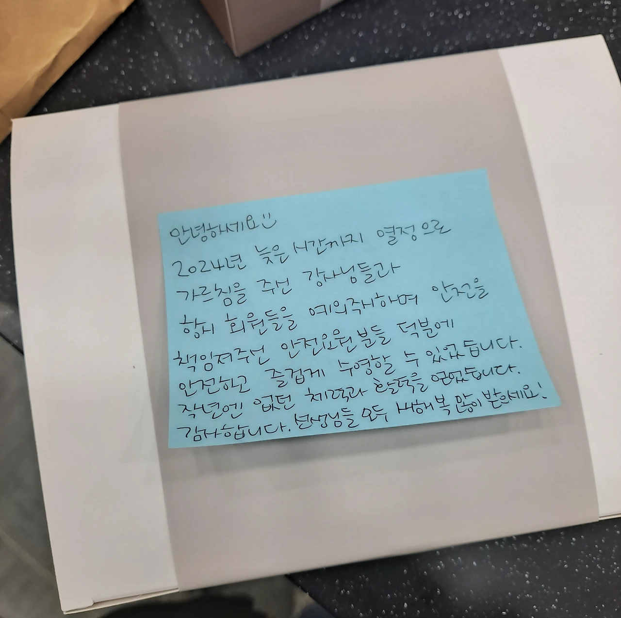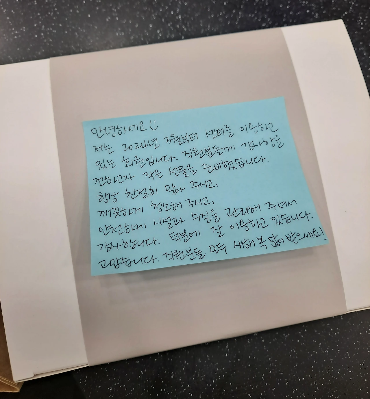 제가 살가운 성격도 아니고, 회원들과 사담을 나누는 편도 아니라서 "안녕하세요. 감사합니다. 수고하셨습니다. 안녕히 계세요." 네 마디 인사만 하고 올 때가 대부분이었는데도 말이에요.