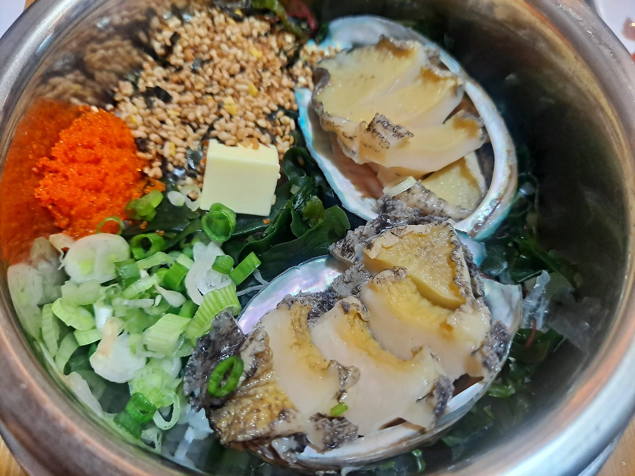 전복 솥밥에 들어간 버터 한 조각 덕분에 풍미가 배가 되어 코와 입이 즐거웠습니다. 버터의 고소한 향이 자칫 비리다 느낄 수 있는 있는 해초의 향을 부드럽게 중화시켜 주었고, 뜨거운 밥알 사이사이 매끄럽게 스며든 버터가 솥밥의 재료를 조화롭게 버무려 주니 한 수저 입에 넣을 때마다 미소가 절로 지어졌습니다. 한 끗 차이가 전부가 되기도 하나 봅니다.