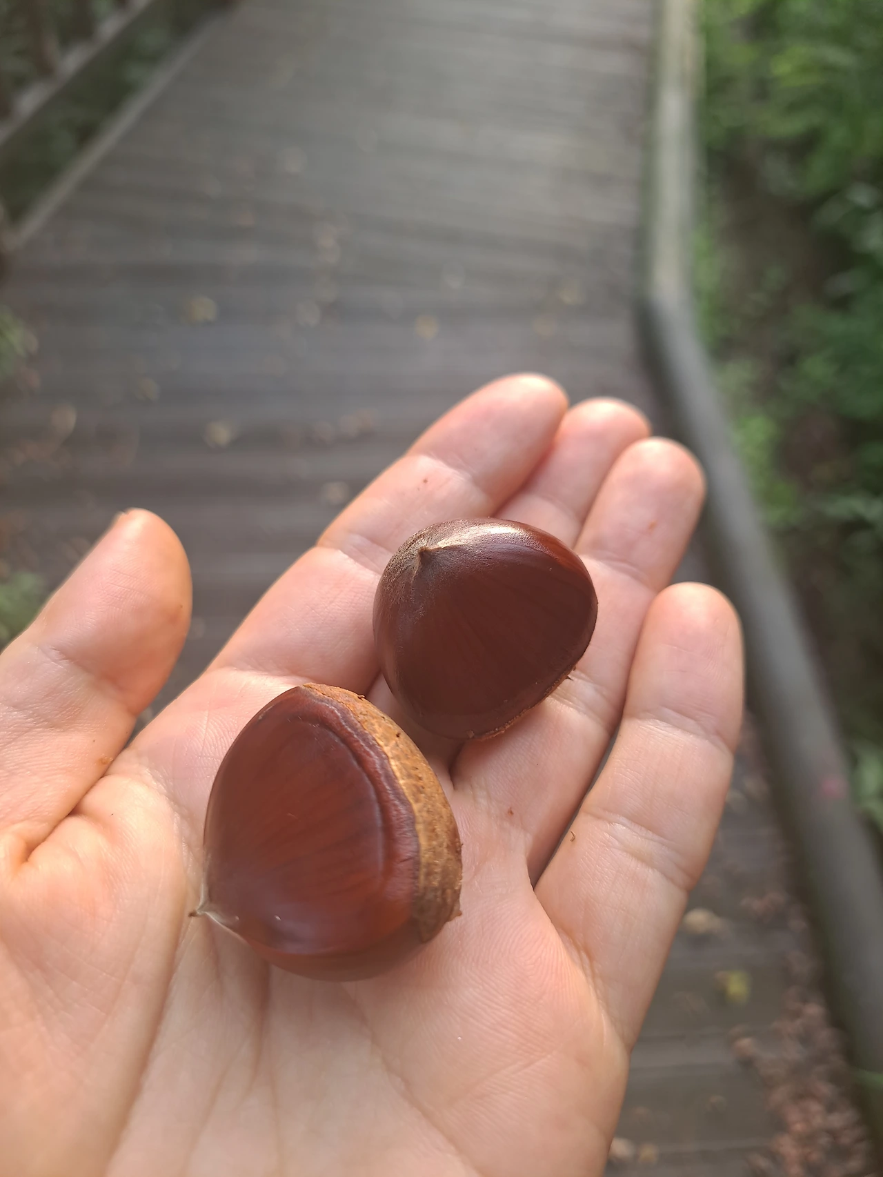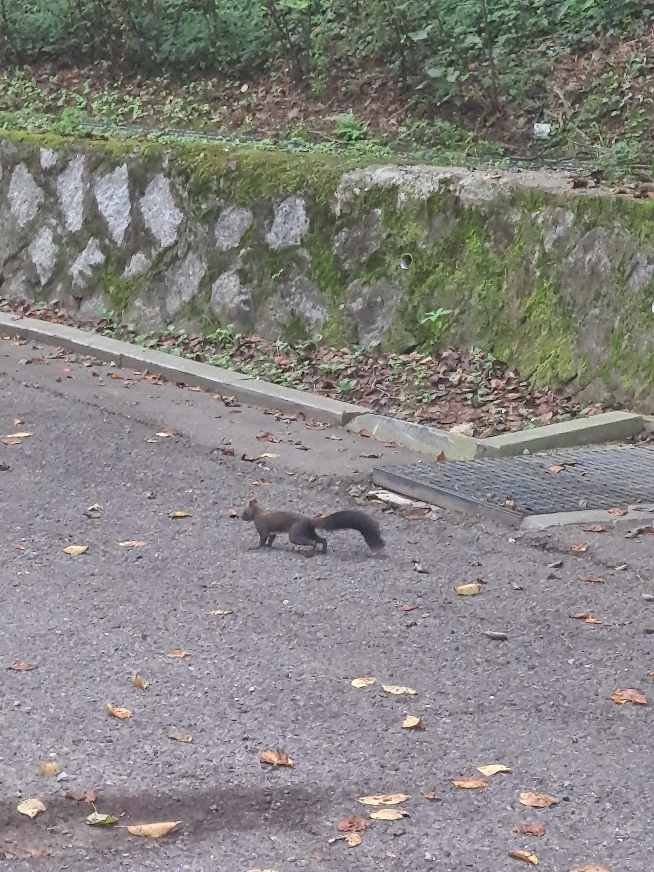 아침 산책길 밤 하나를 버리고 둘을 얻었다. 오늘 일 하나를 거절했는데 괜스레 연결 지어 둘이 뭘까 기대를 품었다. 청설모를 만났다.