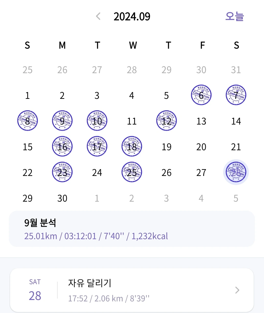 출근 한 시간, 일 여덟 시간, 친구 만나 수다 다섯 시간. 서너 정거장을 걷고 다리를 건너 지하철 한 시간 타고 밤 11시가 넘어 집에 도착했습니다. 뛰지 않을 이유 백만 가지 만들 수 있었지만 뇌에 달리기를 일상으로 프로그래밍한다는 생각으로 나갔습니다. 천천히 뛰었더니 숨쉬기가 한결 편했습니다. 어제 근력운동의 여파로 복부