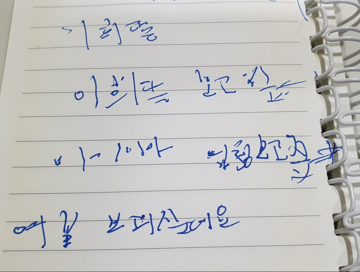 아빠가 떠나고 일주일. 엄마가 말을 잃었다. 전화 통화도 할 수 없었다. 걱정이 되어 요양병원으로 달려가 보니 눈도 제대로 뜨지 못했다. 얼굴에 마비가 와서 한 쪽 입이 일그러진 채 나오지 않는 목소리로 힘겹게 입술만 움직였다. 왈칵 눈물이 쏟아졌다. 엄마의 감당할 수 없는 슬픔이 느껴졌다. 낯설었지만 메모지에 한 글자 한 글자를 힘겹게 써가며 더디게 소통하는 수밖에 없었다.