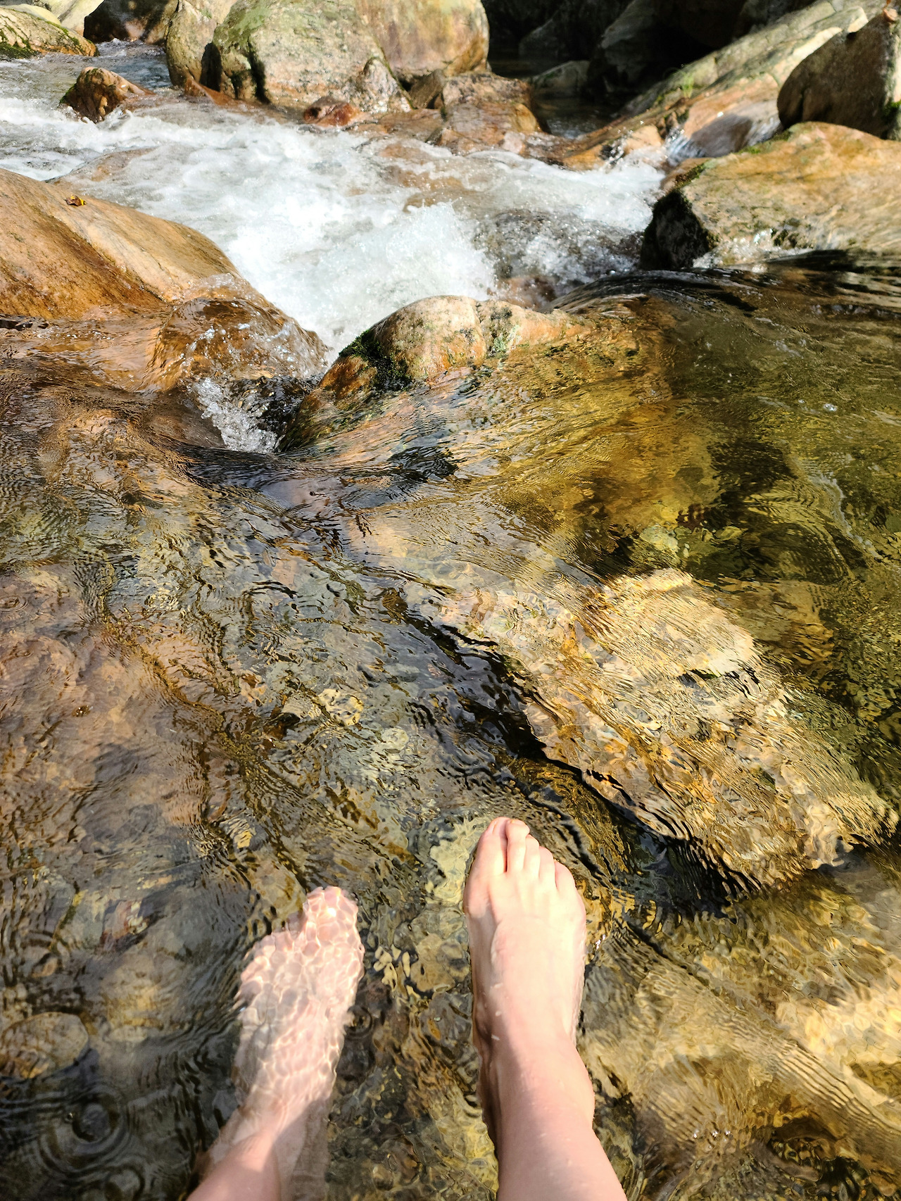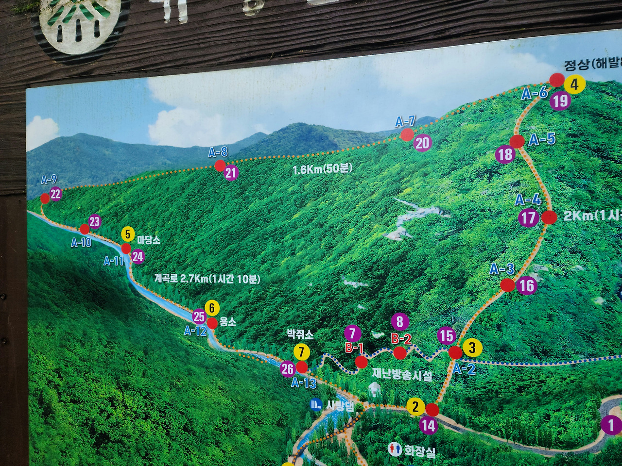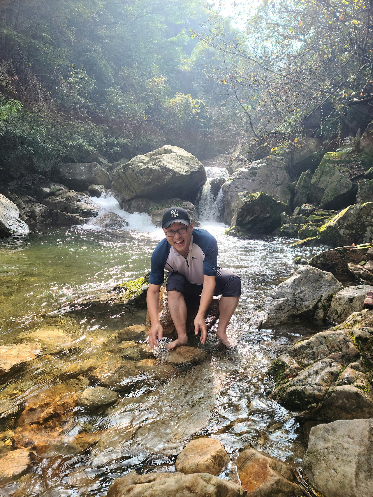 여행 첫째 날 과음을 하긴 했지만 일찍 푹 잔 덕분에 계획대로 다음 날 유명산 등산을 했다. 아침 7시도 되지 않은 시간에 숙소를 나서니 주변은 조용하고 아침 공기는 상쾌했다. 우리는 가파르지만 빠른 코스로 정상을 오르고 계곡을 따라 돌아 내려오는 코스를 선택했다. 오를 때 힘들긴 했지만 1시간 만에 정상에 도착했다. 무척 빠른 편이다. 그런데 내려오는 길이 만만치 않았다. 비가 온 다음 날이라 계속의 물소리는 우렁찼고 돌길은 미끄러웠다. 다리에 힘을 주고 조심조심 내려오느라 올라갈 때보다 두 배로 시간이 걸리고 다리의 피로도도 더해졌다. 하지만 유명산의 계곡은 제대로 감상한 듯하다. 한여름에 오면 더위가 싹 가실 만한 좋은 계곡이다.