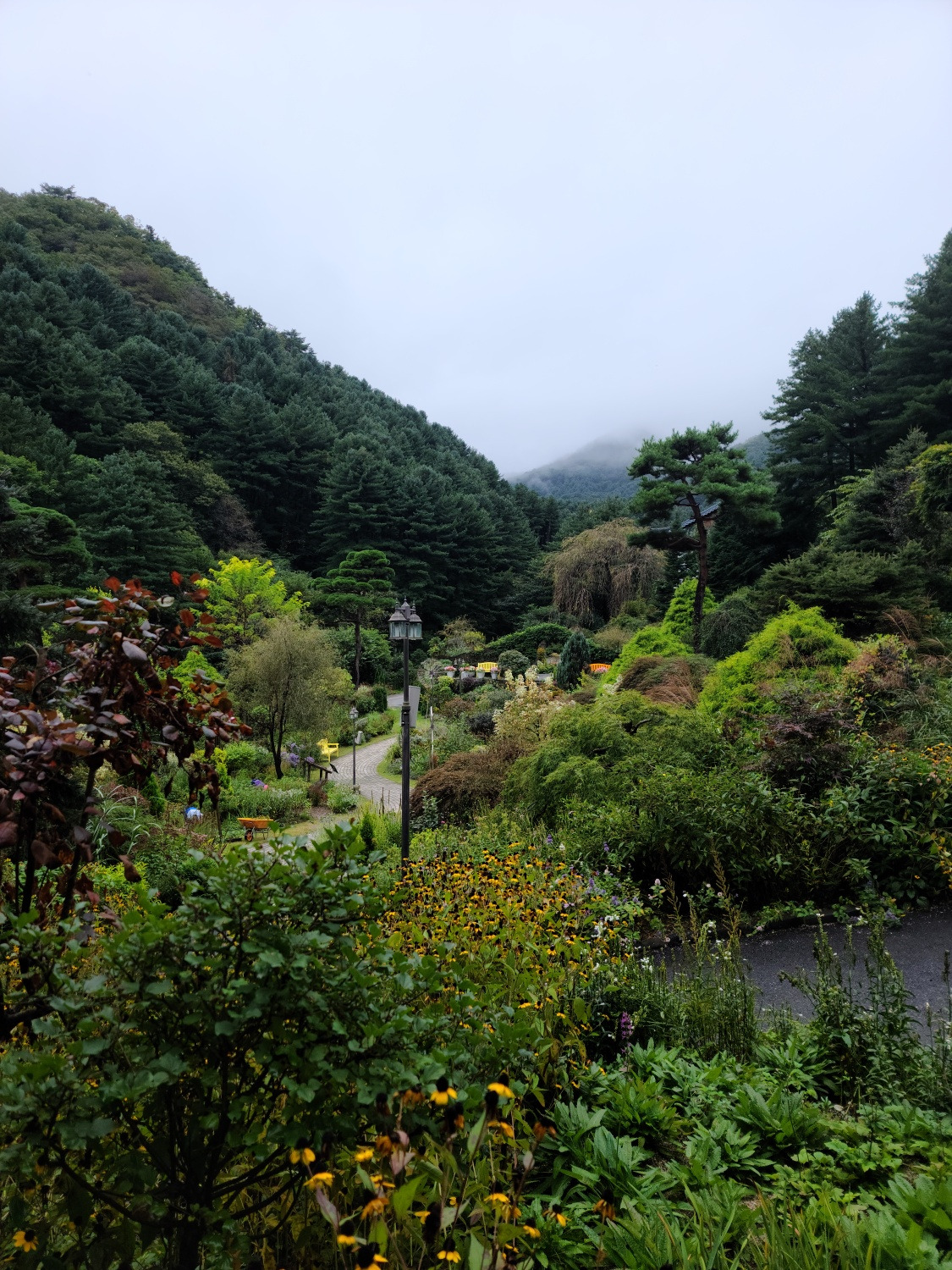 구름 낀 하늘, 비는 오락가락... 이런 날을 좋아한다. 남편과 함께 청량한 바람을 맞으며 아침고요수목원 구석구석을 걸었다. 20년 전 기억은 가물가물해졌고 그때는 없었던 길과 꽃들이 너무나 예쁘게 조성되어 있었다. 이곳을 만든 사람의 정성과 손길이 고스란히 느껴졌다. 11,000원 입장료가 아깝지 않았다. 풍경에 감탄하고, 함께 걸을 수 있음에 감사하고, 내 가족의 건강과 내가 알고 있는 모든 사람들의 행복을 위해 기도했다.