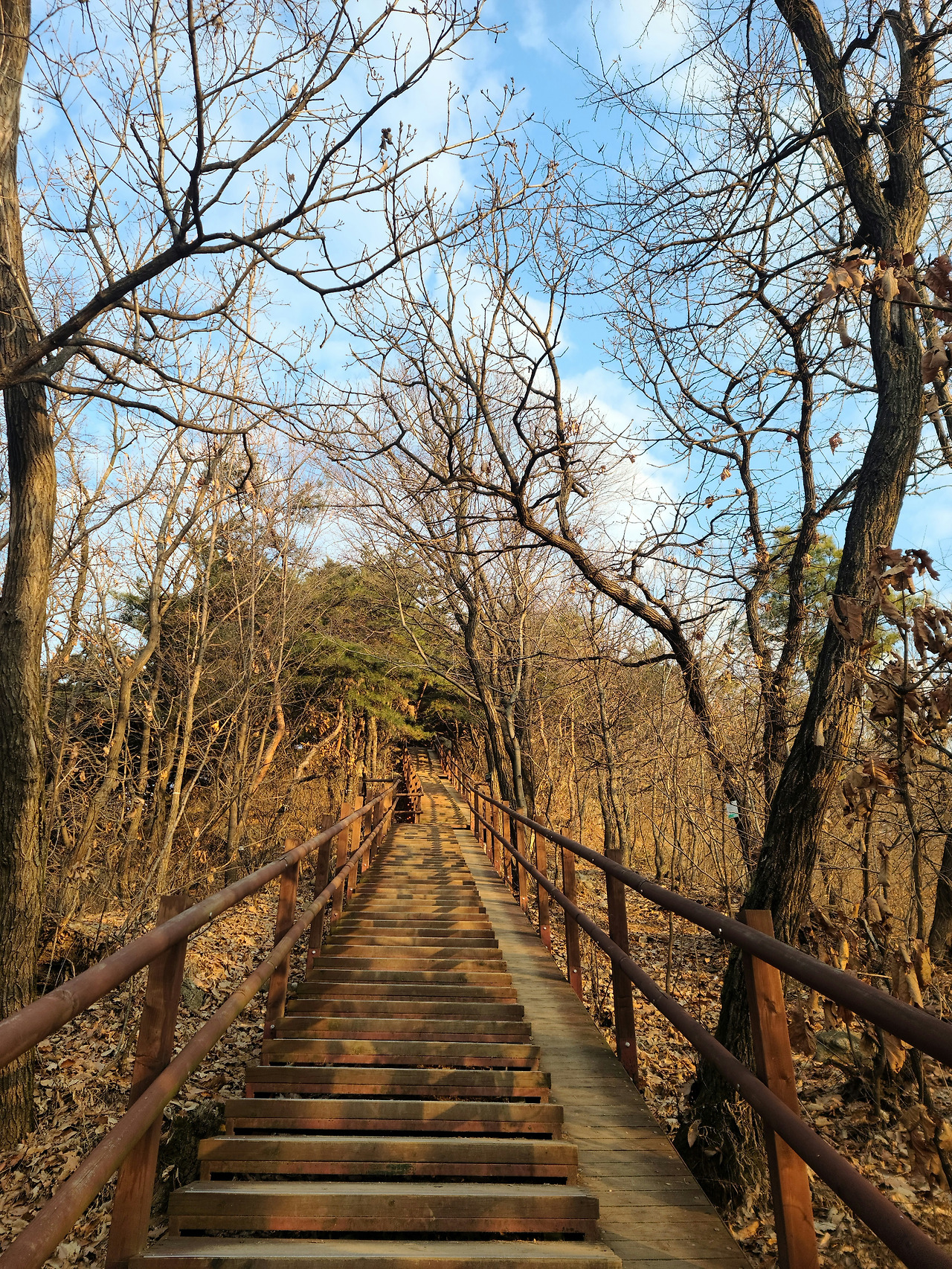 집에서 정상에 오르는 데 3,40분이면 된다. 비교적 가파른 길을 택해 정상에 오르거나 둘레길로 한 바퀴 돌거나 그날의 컨디션에 따라 코스를 고르면 된다. 일주일에 한두 번밖에 운동을 하지 못하는 남편은 둘레길을 선호하고 나는 '그래도 정상'을 고집하는 편이다. 겨울 치고는 요즘 날씨가 너무 푹해서 이른 아침에도 산에 오르는 옷차림이 무겁지 않다. 추운 날에도 산 입구에서 10분만 오르면 외투의 지퍼를 내리게 되고 정상에 오르기 전에 땀이 나기도 한다. 요가원에 다녀보기도 하고 헬스장에도 가 본 적도 있고 최근에는 그룹 P.T라는 것도 경험해 봤지만 돌고돌아 원점이다. 결국 청량산 산책이 나의 운동 습관으로 자리잡는다.