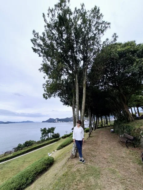 통영이라는 지명은 삼도수군통제영에서 유래했다. 삼도수군통제사 1대가 이순신 장군이다. 우리의 통영 여행 두 번째 코스는 <이순신공원>이다. 남편과 똑같은 신발을 신고 도란도란 이야기 나누며 걸었다. 오래오래 건강하게 함께 걸을 수 있기를 바랐다. 구름 낀 날씨라 걷기엔 오히려 좋다. 쉬엄쉬엄 산책하기 좋은 코스다.