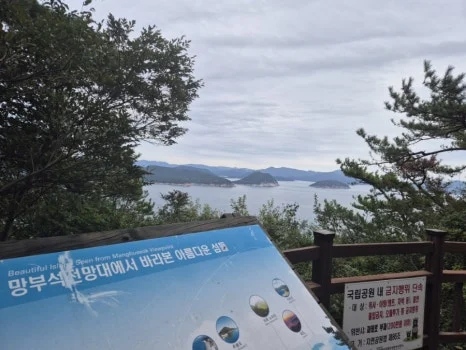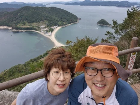 비진도 산호길 트래킹 코스를 걷기로 했다. 2시간 30분 정도 걸은 것 같은데 정말 아무도 없다. 우리 부부 둘만의 오붓한 시간을 만끽했다. 여유롭게 사진 찍고 준비해간 간식도 먹고 도란도란 이야기꽂을 피우며 많이도 웃었다. 중간중간 전망대에서 바라본 풍경은 그야말로 최고다. 공기가 좋아서인지 돌아오는 길에 아주 건강해 보이는 달팽이를 만났다. 시간에 구애받지 않고 자연을 걷다보면 평소에 보이지 않던 것들이 보이고 들리지 않던 것들이 들린다. 이렇게 작은 것들을 다 느끼고 살면 좋겠다 싶다. 우리 부부의 꿈, 조용한 지방에서의 제 2의 인생 살기를 다시 한번 다짐한다.