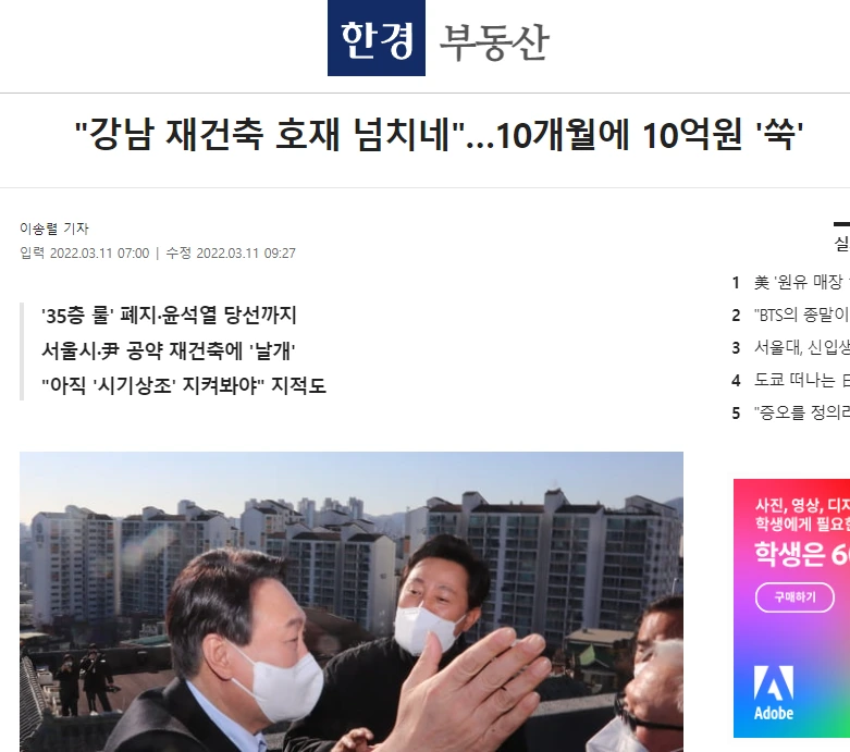 지난 11일 대선 결과가 나온 바로 그날 아침 기사부터 부동산 ‘폭등’ 기사는 어느새 ‘호재’로 변모했습니다.