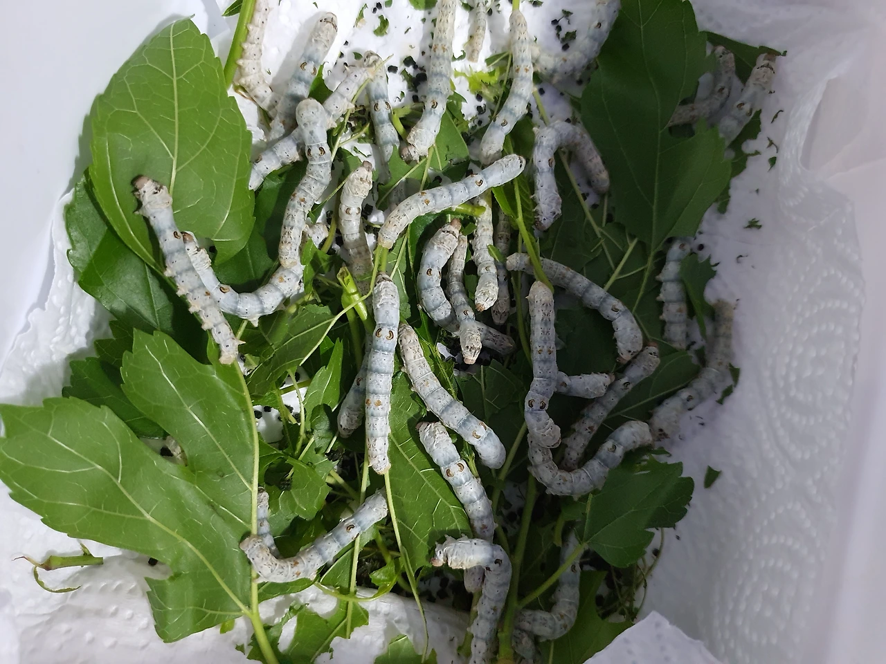 뽕잎을 맛본 누에들은 사료는 거들떠보지도 않고 뽕잎만 쳐먹기 시작했다.