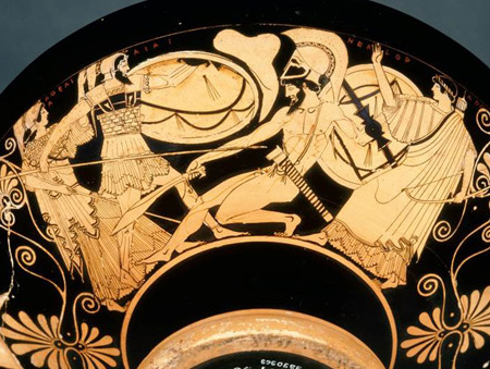 The Duel of Ajax & Hector, Attic red-figure cup, c. 490-480 BC by Douris @Musée du Louvre, Paris