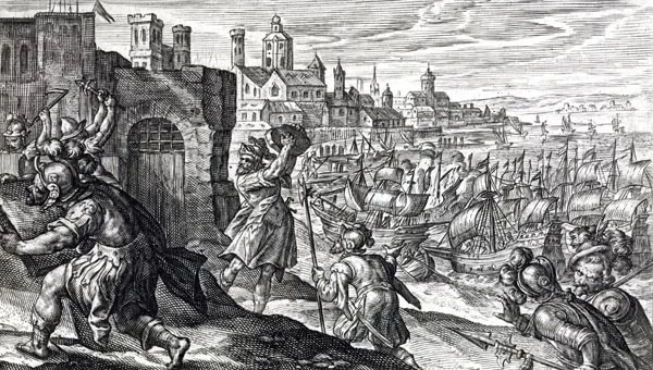 페트로클러스가 유리필루스를 돌보는 동안, 그리스 군은 방벽까지 밀고 들어온 트로이 군과 대치해 싸운다. 화자는 트로이 전쟁이 끝나면 아폴로와 포세이돈이 (신의 허가를 받지 않은) 그리스 군의 방벽을 허물고 원상태의 평원으로 복구할 거라고 말한다. 잘 지어진 그리스 군의 참호와 방벽은 트로이 군의 군마차를 멈춰 세운다. 말들이 두려워 감히 건너뛰지 못한 것이다. 헥터는 말에서 내려 그리스 캠프로 돌진하라고 명령한다. 그리스 군은 방벽 위에서 무수한 돌을 필사적으로 던지며 물러서지 않는다. 헥터와 동지 폴리더머스는 방벽을 허물고 적의 함대를 불사르기 위해 참호를 건너야 할지 망설인다. 그 순간 독수리 한 마리가 오른쪽에서 왼쪽으로 날며 발톱에 움켜쥔 살아있는 뱀을 그들 사이에 떨어뜨리고 가버린다. 폴리더머스는 이를 나쁜 징조로 보고 그들의 미션이 실패할 거라고 말한다. 헥터는 날아가는 새가 아닌 애국심이 진정한 새라며 그의 예언을 무시하고 군대를 이끌고 참호를 건너 전진한다. 불타는 눈을 부릅뜨며 헥터는 거대한 바위로 방벽을 쳐부수고 트로이 군은 안으로 쏟아져 들어온다. 패배한 그리스 군은 비명을 지르며 기지 함대로 도망친다.