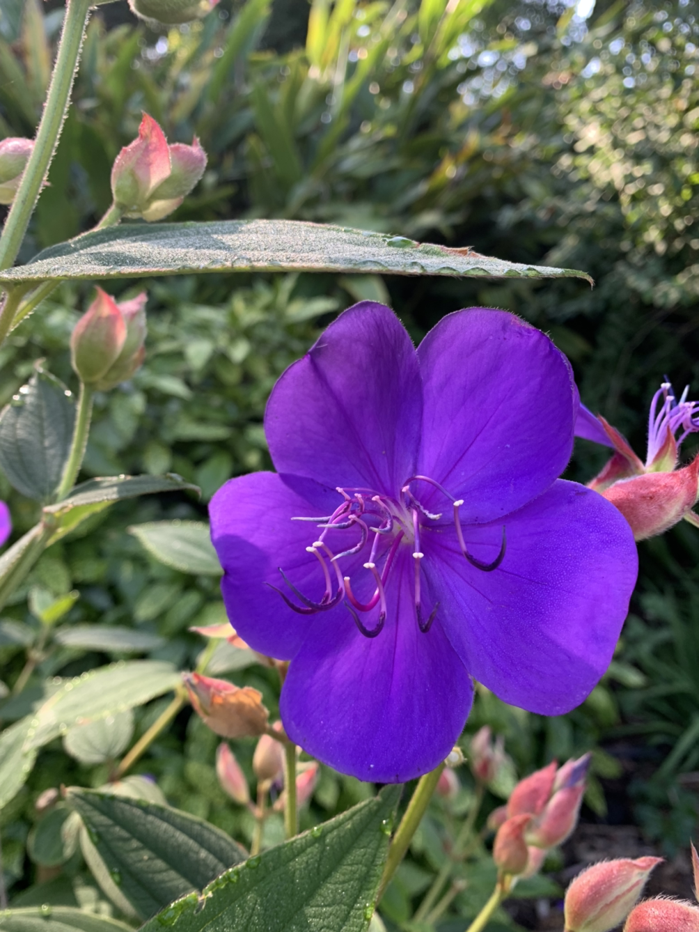 Yes, I do. Workalem, whose dark skin radiated like a supple petal, asked from behind me as I zoomed in over the flowers. A busy mum of four young kids will get to a stage sooner or later when she nurtures her soul with this kind of trivia. The garden flowers are showy but aren't pompous, and they seem to know the virtue of harmony. Among them, this purple flower emanated a noble aura. It is called Princess Flower. A plant identifier app taught me they are popular among the royal botanic gardens.