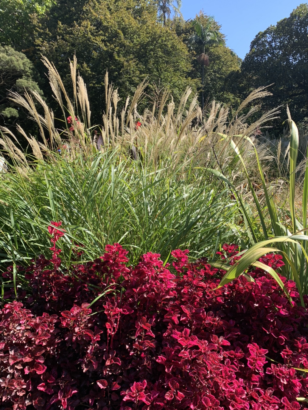 We came across Bloodleaf. The vivid red bush was like firey flowers and Chinese silver grasses danced to the breeze next to them. They looked good together, or they didn't. At least they were thriving and surviving, and that's the main thing.