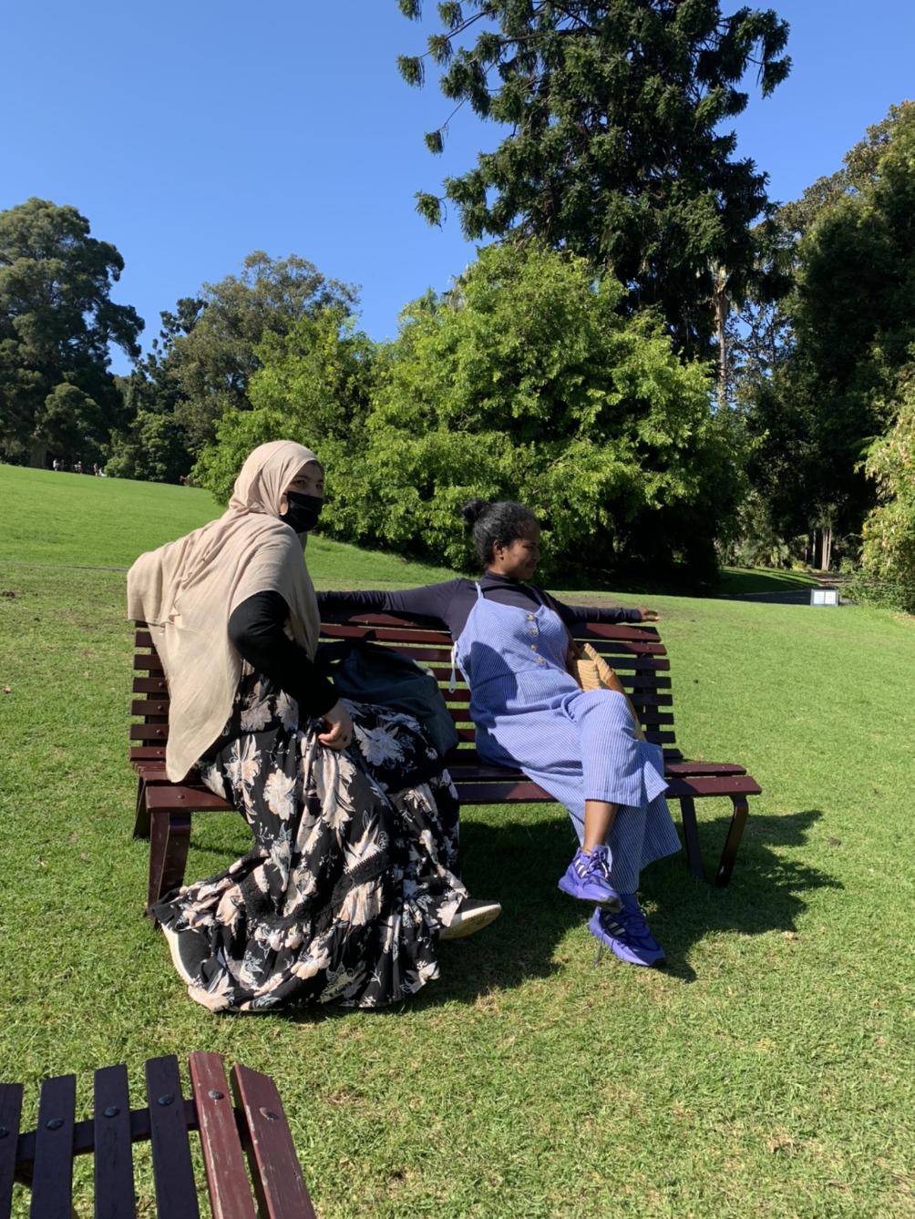 A few pale faces, swathed in a head scarf, were getting used to the Aussie sunlight, their long skirts fluttering carefree in the wind behind them.