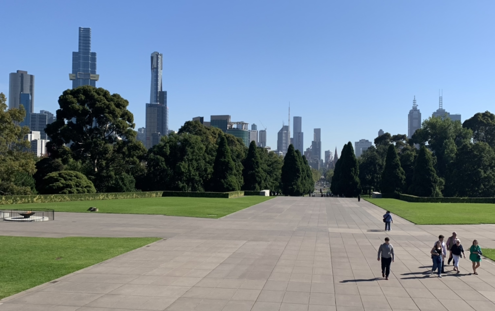 Forty minutes into the train ride, we were in the city. We squeezed into our plan quite a few places to explore by lunchtime when we'd be catching the train back to Werribee. The first destination was Royal Botanic Gardens. We caught a tram outside Flinders Street Station. We were passing Melbourne's art precinct, the art centre and national gallery, along the boulevard flanked by plane and elm trees. St Kilda Road. There have been few changes from what it was when I first came to Melbourne, apart from the modern trams running alongside. Opposite the art precinct is the ever-neat and green Alexandra Gardens. I glanced at the silent faces looking out the window of the tram.