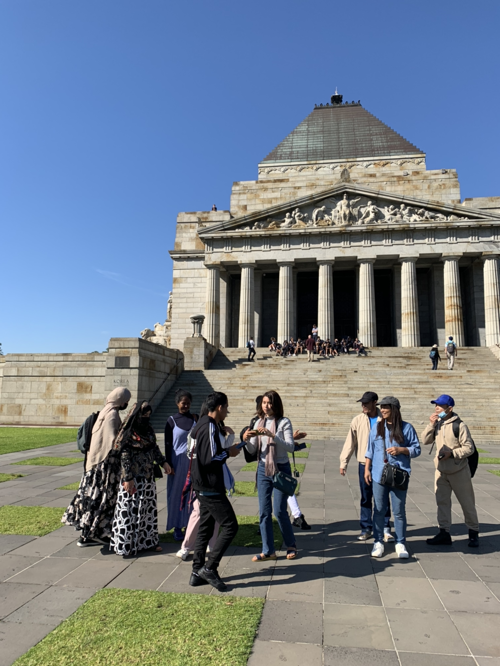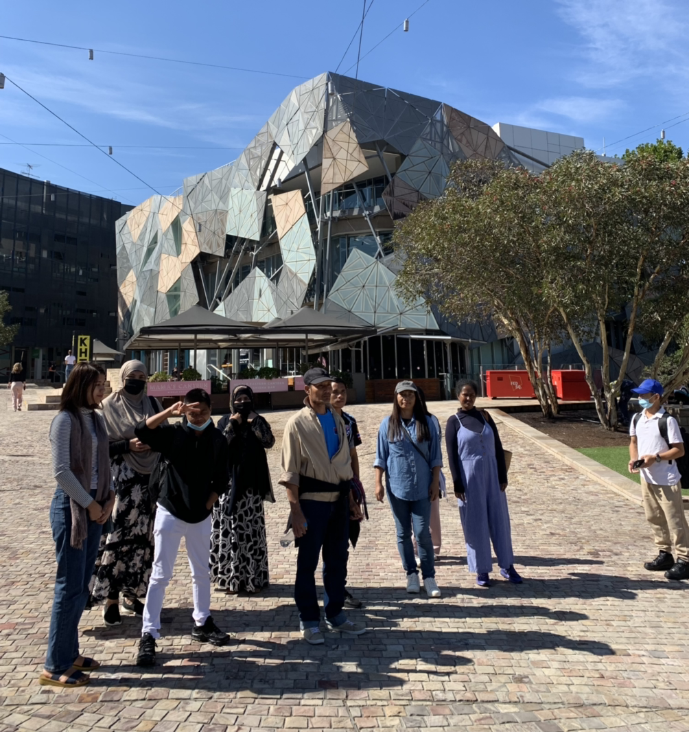 We decided to go on an excursion to the city on Tuesday in the last week of term 1. It’s been delayed for a few weeks due to the rain forecast and the harmony day event. We planned to gather at 9 am and take the train to the city, Flinders Street Station. Six students were at the station when I arrived, and we waited 20 minutes for latecomers. Two more students came before we got on the citybound train.