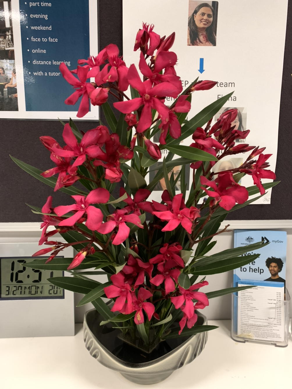 리디아는 평생을 멜번에서 살았다. 고등학교에서 15년간 불어와 영어를 가르쳤고 지금은 AMEP(이민자 영어교육) 매니저이다. 작년에 나는 그녀에게 침봉 꽃꽂이를 소개했다. 그녀가 핀들이 달린 침봉과 쟁반 같은 화병을 만난 건 숙명일까. 겨울날 꽃이 궁할 땐 검트리(gum tree)라도 담기지 않는 날이 없었고 남의 집 화단이건 어머니집 정원이건 동백, 국화, 라벤더, 꽃들을 꺾어와 그녀 오피스와 우리의 복도를 장식했다.