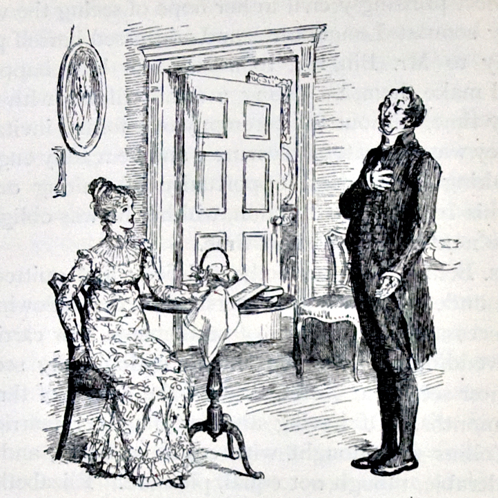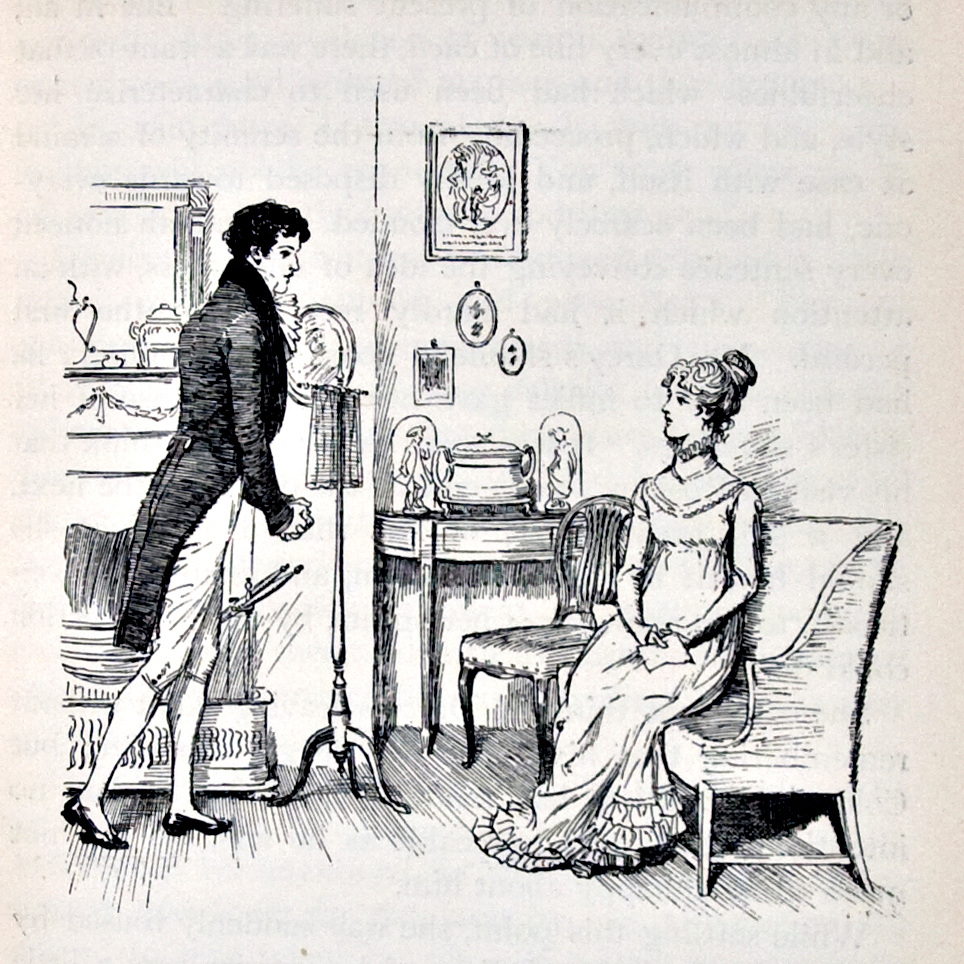 콜린스는 사랑의 감정에 휩쓸려 자제심을 잃기 전에 결혼을 결심한 이유를 먼저 말해야겠다고 합니다. 미리 준비한 듯한 이유들은 나름 정의롭습니다. 성직자로서 모범을 보이기 위해, 그를 목사직에 추천한 후원자 캐서린 드 버그의 충고를 받들어, 롱번 저택의 상속자로서 베넷가 딸들에게 어떻게든 보상하고자 하는 선의에서.. 그의 긴 모놀로그는 직접화법으로 노출됩니다. 청혼이라는 그릇에 내용물은 설교에 가까운, 호의를 가장한 기실 끈질긴 애걸에 다름없습니다. 그 자리에서 거절당하지만 처음 두세 번은 남자를 애태우기 위한 교양 있는 여자들의 내숭이라고 말합니다. 결혼 지참금이 너무 적은 그녀에게 또 다른 청혼자가 나타날지 모를 일이며 남편감으로서 자신의 조건이 얼마나 바람직한지를 스스럼없이 드러냅니다. 그의 진심 어린 오만은 그녀의 거절을 끝내 거절합니다.
