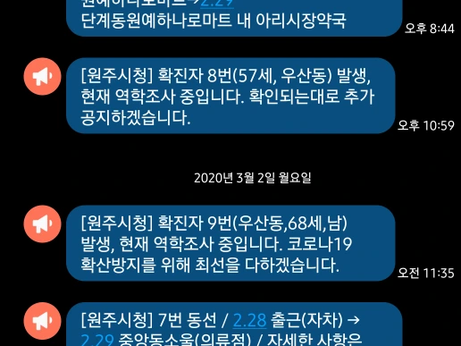 코로나 19, 원주도 예외는 아니었다. 확진자 9번 발생, 시청에서 보내는 긴급 알림이었다. 연이어 확진자의 동선을 알리는 경보 알림이 울렸는데 거기엔 익숙한 단체의 이름이 적혀있었다.