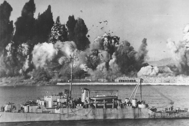 전차와 군용 차량들을 따라 군인들이 줄을 지어 배에 올랐다.
