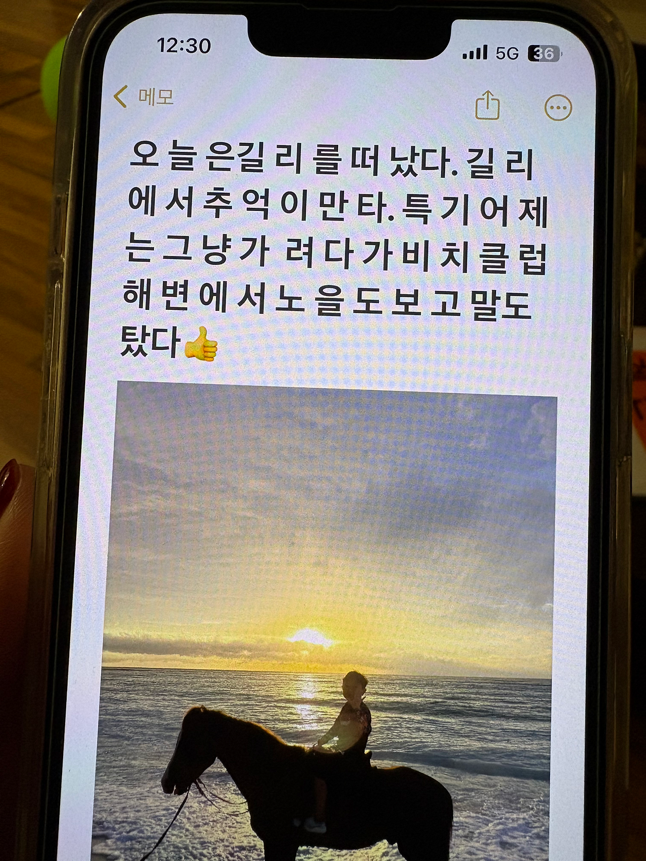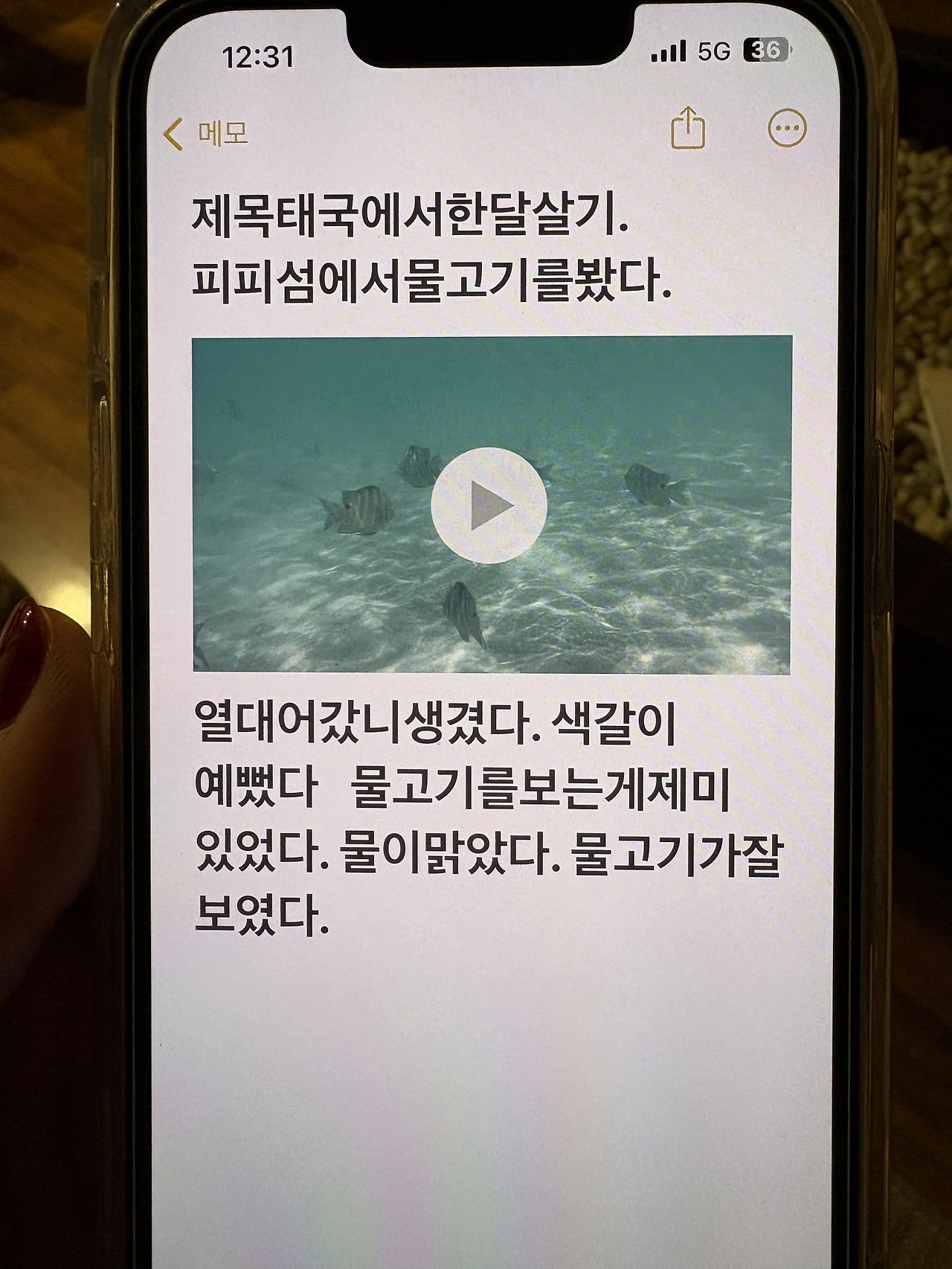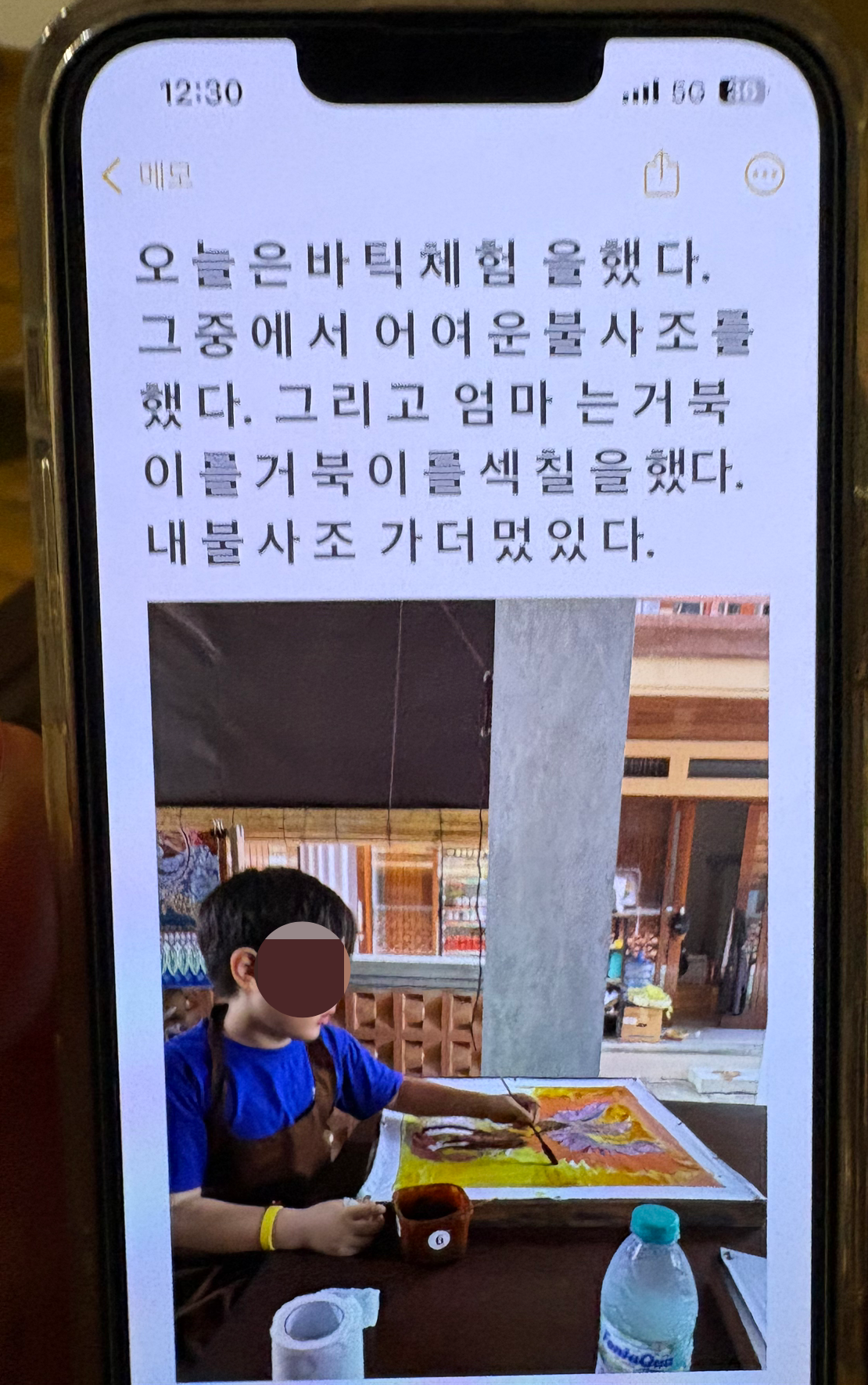 혼자 중얼거리며 메모장에 글을 써 내려가는 모습에 내심 대견했다. 2024년 발리 여행 때 물려준 휴대폰에는 메모와 지도, 계산기 앱만 깔아두었다. 그때도 내가 블로그 포스팅을 작성하는 모습을 보더니 메모장에 일기를 쓰기 시작했다. 종이 일기장은 귀찮아하면서 휴대폰에는 언제 저렇게 많은 글을 쌓아둔 것일까.