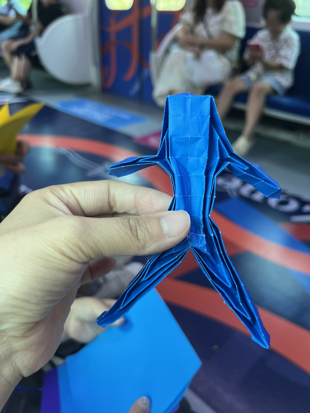 열차 탑승을 기다릴 때부터 종이접기를 시작해서