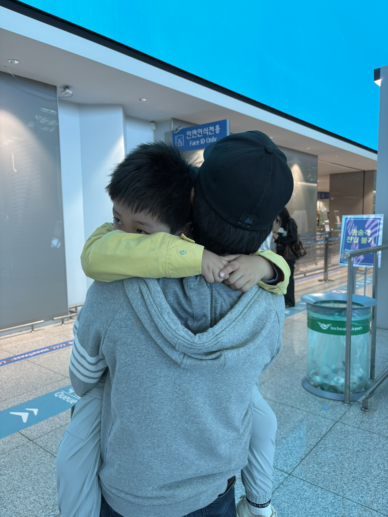 아빠를 남겨두고 보안검색장으로 들어가려고 하니