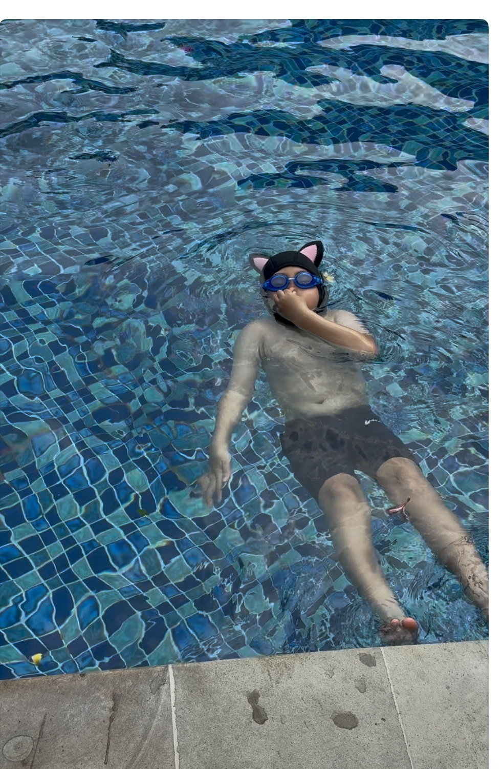 체크인하자마자 그리고 체크아웃하기 전까지 꽉꽉 채워서 수영을 했다. 남편이 오니까 그렇게 편하고 좋을 수가 없다. 물이라면 환장하는 남편이 아들과 수영장에서 놀 동안 선베드에 누워 낮잠을 잤다. 아들은 수영 잘하는 아빠를 보고 자기도 잘하고 싶어 졌는지, 발이 닿는 수영장에서 처음으로 튜브를 벗어던졌다. 코에 물들어갈까 무서워 코를 쥐어잡던 손도 과감하게 떼고 물에 몸을 맡긴 채 뜨는 연습을 했다. 아이가 조금씩 성장하는 모습을 지켜보는 건 큰 즐거움이다. 그렇게 수심이 얕지 않았는데 어느새 아들의 키가 그렇게 컸다는 것도새삼 실감이 났다.