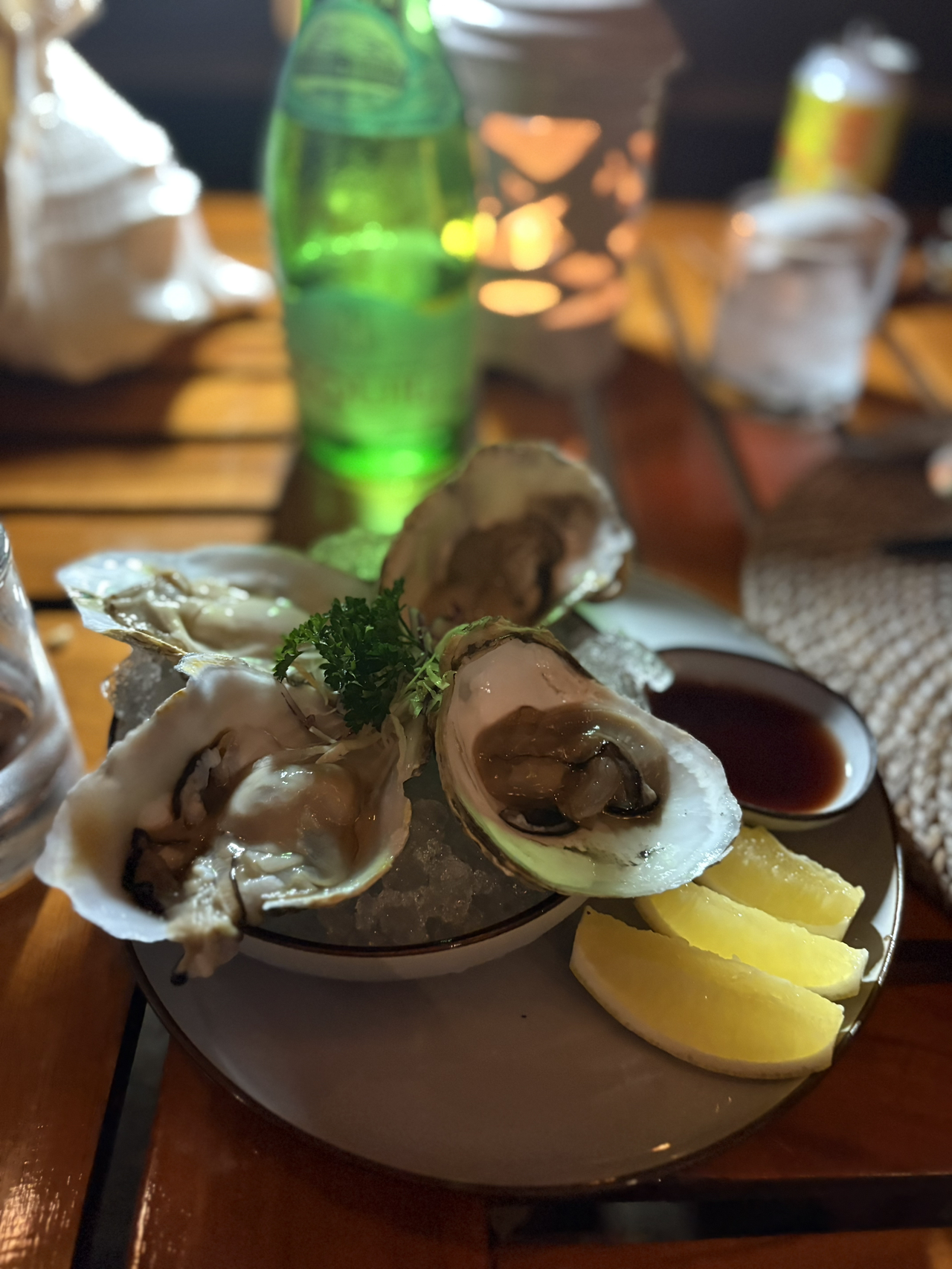 뜨거운 부자 상봉이 끝나고 서둘러 예약한 식당으로 갔다. 원래 노을이 정말 멋진 곳이라고 하는데 구름이 많아서 그런지 엄청 인상적이진 않았다. 하지만 신선한 해산물은 눈을 휘둥그레하게 만들었다.