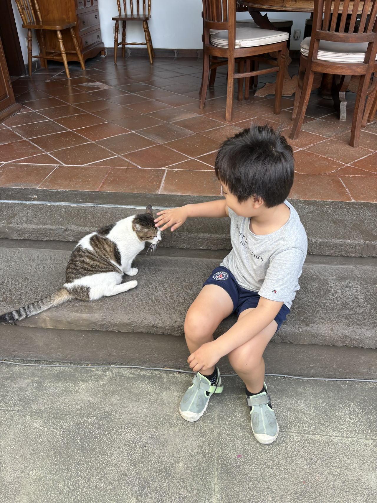 일주일 전부터 벨라와 헤어져서 너무 아쉽다는 말을 입에 달고 살던 아이는, 학교에서 나와 아야나로 향하는 택시를 타자마자 오늘 벨라를 봤는지 물었다. 오늘 아침부터 벨라는 보이지 않았다. 다행히 떠나기 전날 아이가 하교했을 때 벨라가 숙소에 있었다. 벨라 옆에 앉아 말을 걸고, 쓰다듬어 주고, 함께 사진을 남겼다. 아이 체조수업이 끝나고 돌아왔을 때 벨라가 조식당에 있길래, “벨라!”하고 큰 소리로 불렀더니 “야옹 “하고 돌아봤다. 여느 때처럼 총총총 달려오지 않길래 봤더니, 숙소 매니저인 카덱이 통조림을 들고 있었다. 특식은 참을 수 없지! 30분 뒤, 세탁한 빨래를 받아 들고 방으로 걸어가는데 벨라가 보였다. “벨라!”라고 부르는 소리에 총총총 달려오는 모습이란! 이렇게 친절한 고양이라니! 한참을 우리 방 앞에 누워있다가 사라졌다. 이곳은 고양이마저도 친절한 신들의 섬, 발리이다.