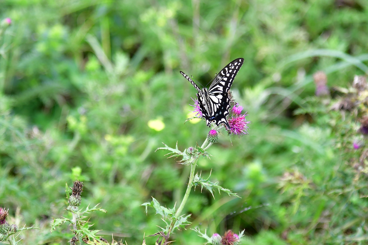 정상부 능선에 길게 이어진 딱지꽃 군락과 개엉겅퀴 꽃 무리, 그리고 진분홍 꽃을 찾아 날아온 호랑나비, 굴뚝나비, 남방노랑나비, 큰멋쟁이나비, 제비나비 등이 흡밀하는 모습을 보자 청년들의 눈과 입이 바빠지기 시작했다. 그들이 보기에도 원물오름 정상 능선은 나비 성충과 애벌레가 먹을 수 있는 풀들이 눈에 밟히게 많이 남아 있는 경관이다. 청년들은 가방을 내팽개치고 한동안 나비 사이를 누비고 다니면서 이곳을 소개해 줘서 고맙다는 말을 민망할 정도로 여러 번 반복했다.