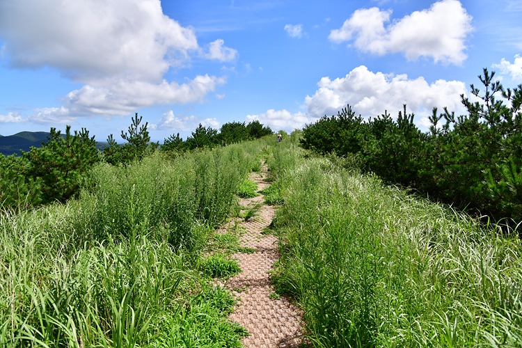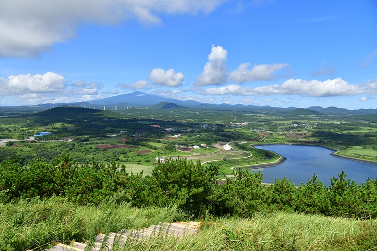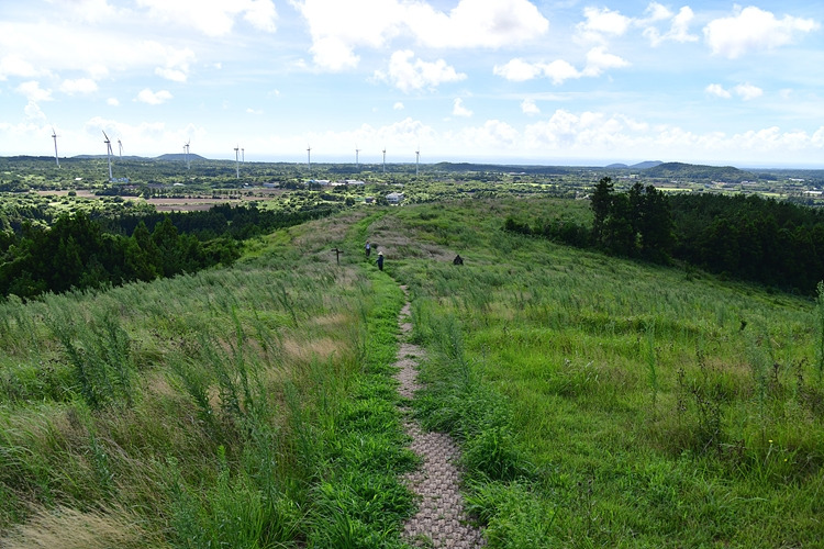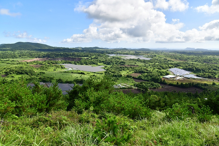 한라산과 오름 군락 위를 통통거리는 구름을 벗 삼아 한 발 한 발 오름 정상을 향합니다. 멀리 바닷가에는 성산일출봉과 우도가 나란히 떠 있고, 곧게 깎여나가는 채석장 절벽, 곶자왈(또는 농지)과 이질적인 상판을 드러내는 태양열 발전, 물이 가득한 저수지 옆에 깡마른 저류지 등 자연 속에 남아 있는 영특한 영장류의 흔적들이 눈에 들어오네요. 예전에도 저곳이 이랬었나? 3년 전에는 저게 없지 않았었나? 3년 만에 달라진 강산을 바라보며 아무런 의미 없는 기억을 더듬어봅니다.