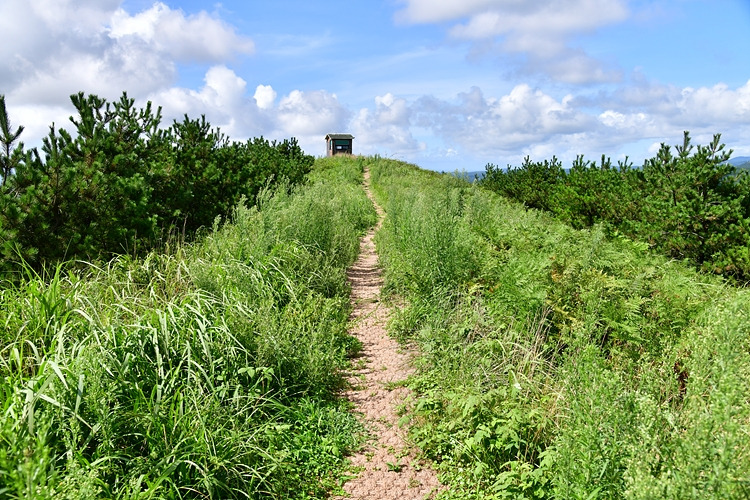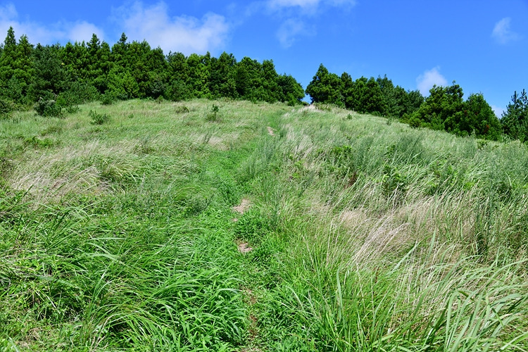 영주산은 2022년 논문 준비를 위해 한 달에 세 번씩 꼬박꼬박 찾았던 곳 중 하나입니다. 당시에는 오름 입구에 방목 중이라는 빨간 글씨와 관리인의 전화번호가 남겨져 있었고 이맘때쯤엔 방목한 소들이 탐방로를 가로지르는 풍경을 볼 수 있었지요. 지금은 소들도 보이지 않고 여름 동안 풀베기 작업을 하지 않았는지 탐방로 주변뿐만 아니라 지난 4월에 새로 설치한 야자 매트 위로 제법 풀이 자랐습니다.