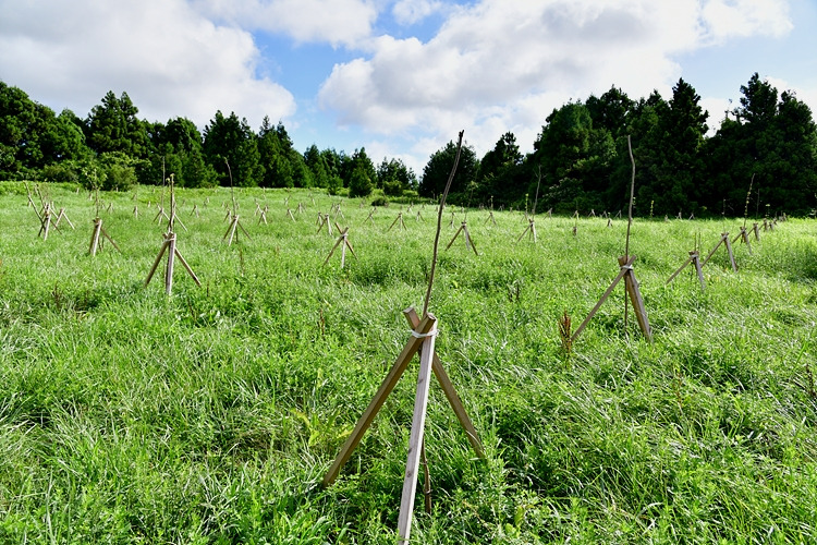이런 식의 나무 심기라면 차라리 경북 의성군의 ‘고운사 사찰림 자연 복원 프로젝트’처럼 오름도 그대로 두어도 되지 않을까 싶네요. ‘우리 강산 푸르게 푸르게’를 외치며 오름 녹화를 했던 과거와는 다른 오름의 경관 생태(식생)에 대한 숙고가 필요하지 않나 싶습니다. 무용하게 쓰이는 예산도 그러하지만, 단단한 부목 때문에 흙으로도 돌아가지 못하는 어린나무들의 모습에 가슴이 먹먹해지네요.