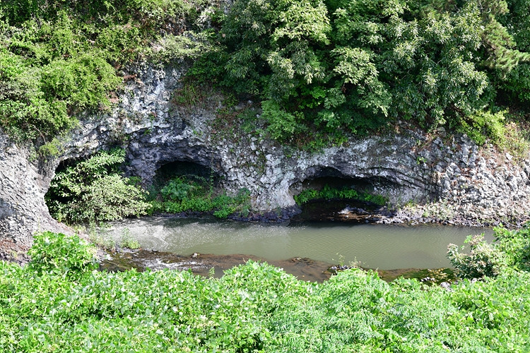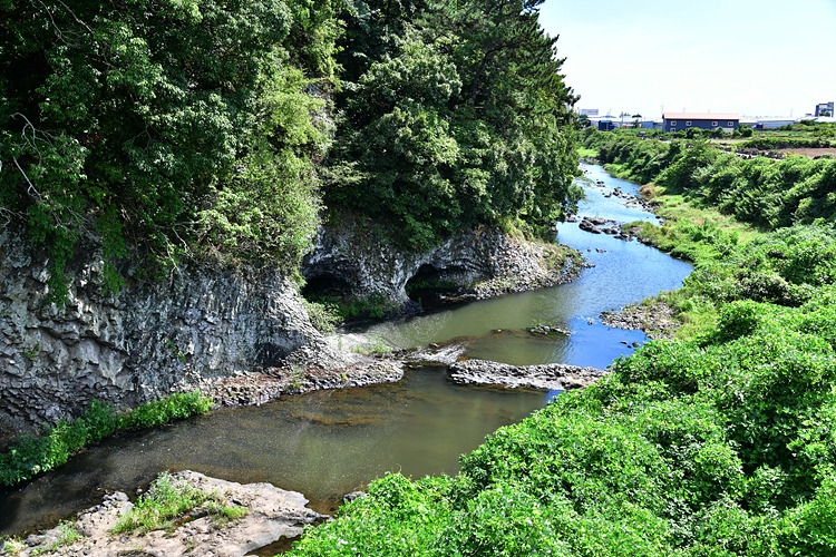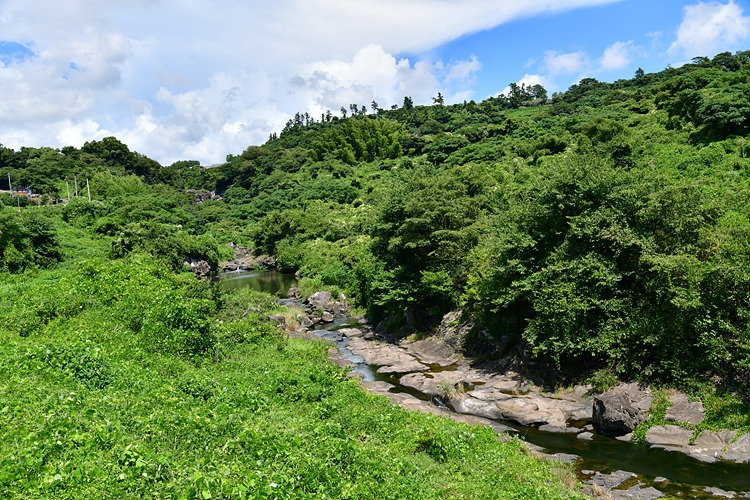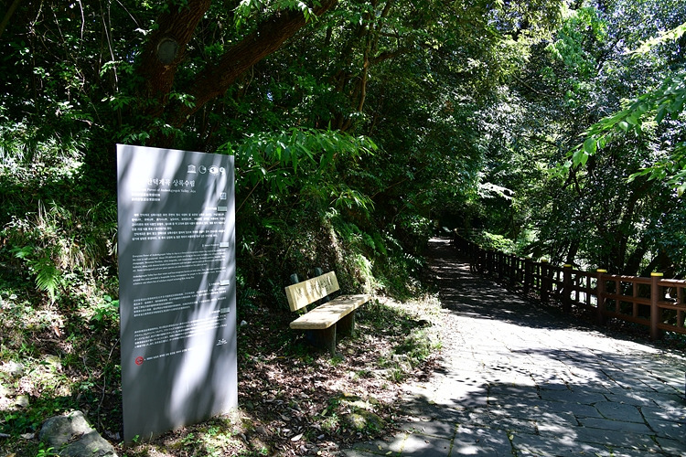 군산오름 숲길을 내려오면 바로 창고천이다. ‘안덕계곡 창고천은 1100도로변 삼형제오름 주변의 고산습원에서 발원’한 하천이라는데 도대체 어디쯤에서 오염된 건지 계곡물 상태가 영 건강해 보이지 않는다. 무태장어를 비롯해 여러 수생생물들이 산다고는 적혀있지만 양재소의 빛깔은 초록빛 나뭇잎조차 비출 수 없을 정도로 탁해 있다. 안덕계곡 상록수림지대는 천연기념물로 지정, 보호되고 있다는데 계곡 사이마다 점선처럼 이어지는 작은 내와 소에서 노니는 물잠자리는 정작 아무런 보호를 받지 못하고 있는 것만 같으니.