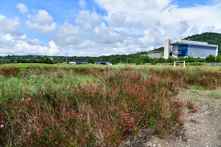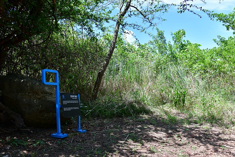 목덜미에서 스멀스멀 통증이 밀려온다. 다행히 월라봉 서쪽 기슭을 따라 진모르동산을 내려오자 숲길이 끝났다. 개끄리민교를 건너 창고천의 기이한 절벽 끝자락에 자리한 화순리 선사유적을 뒤로하니 황량한 공원이 나오는데 ‘남제주 나누리 파크’다. ‘누구에게나 열려 있고, 추억을 공유하는 행복한 장소’란 의미를 담고 있다는 친절한 안내판과는 달리 몇 년 전 파종했는지 알 수 없는 버들마편초 줄기들과 일부 풀꽃 무리만 망초 무리에서 앙상하고 지속적인 관리 없이 방치된 지 몇 달(아니 1년 이상)은 족히 넘은 것 같다. 어디나 새로 심기만 하고, 새로 만들기만 하고, 꾸준히 관리하는 일에는 소홀하니. 목덜미 통증이 머리 꼭대기까지 올라온다.