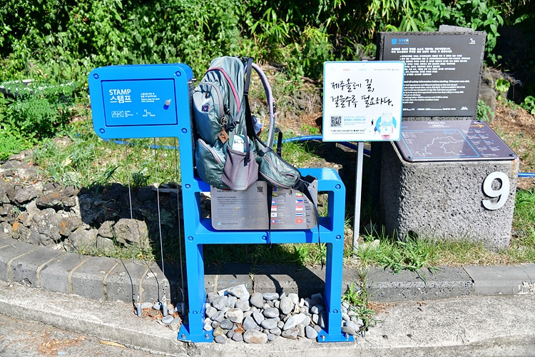 제주 본섬에 있는 23개의 올레 코스 중 세 번째로 짧은 코스다. 12km. 그러나 짧은 거리에 속았다. 올레 9코스는 장거리인 3코스(20.9km)를 제외하면 유일하게 별 3개짜리 고난도 코스였다. 박수기정 절벽을 타고 군산오름을 오르는 동안 그늘에서 십분씩 여러 차례 쉬며 수분 보충하느라 거리당 소요 시간이 가장 긴 코스였다. 땀이 비 오듯 하고 종점이 가까워지면서 뒷머리가 지끈거렸지만 다행히 살아남았다.