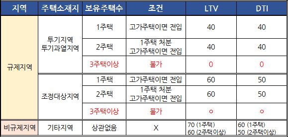 조정지역 주택임대사업자의 기업대출은 지역별 LTV60-80까지 가능함. 투기/투과지역은 LTV 40.