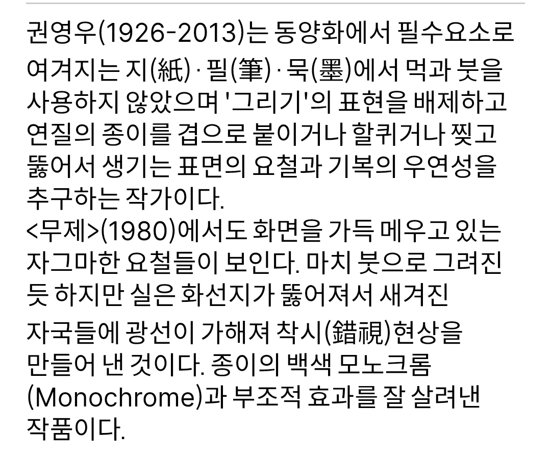 개인적으로는 요 작품이 가장 울림이 컸습니다. 저는 단순과 반복이 주로 사용되는 현대미술이 참 좋습니다.