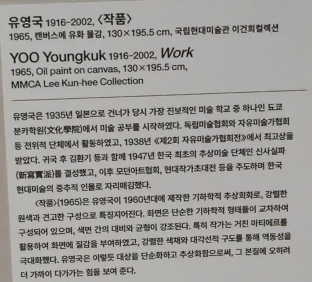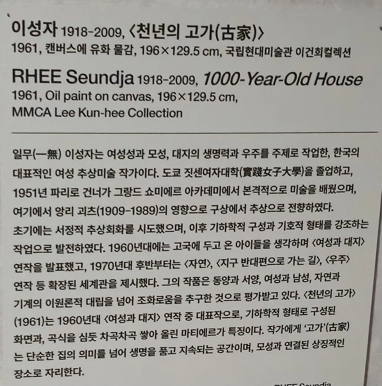 이번 주제는 한국 현대미술 하이라이트이며 1960년부터 2010년대까지 MMCA가 자체 소장한 현대미술 대표작 90여 점을 전시하고 있습니다.