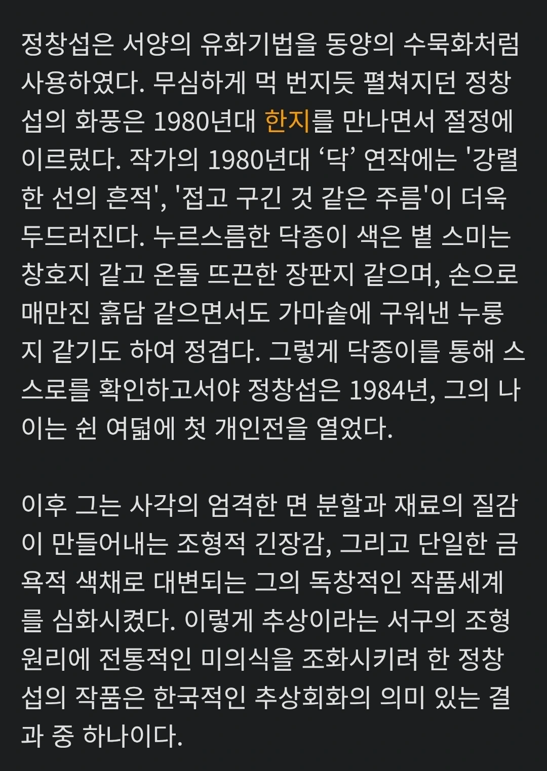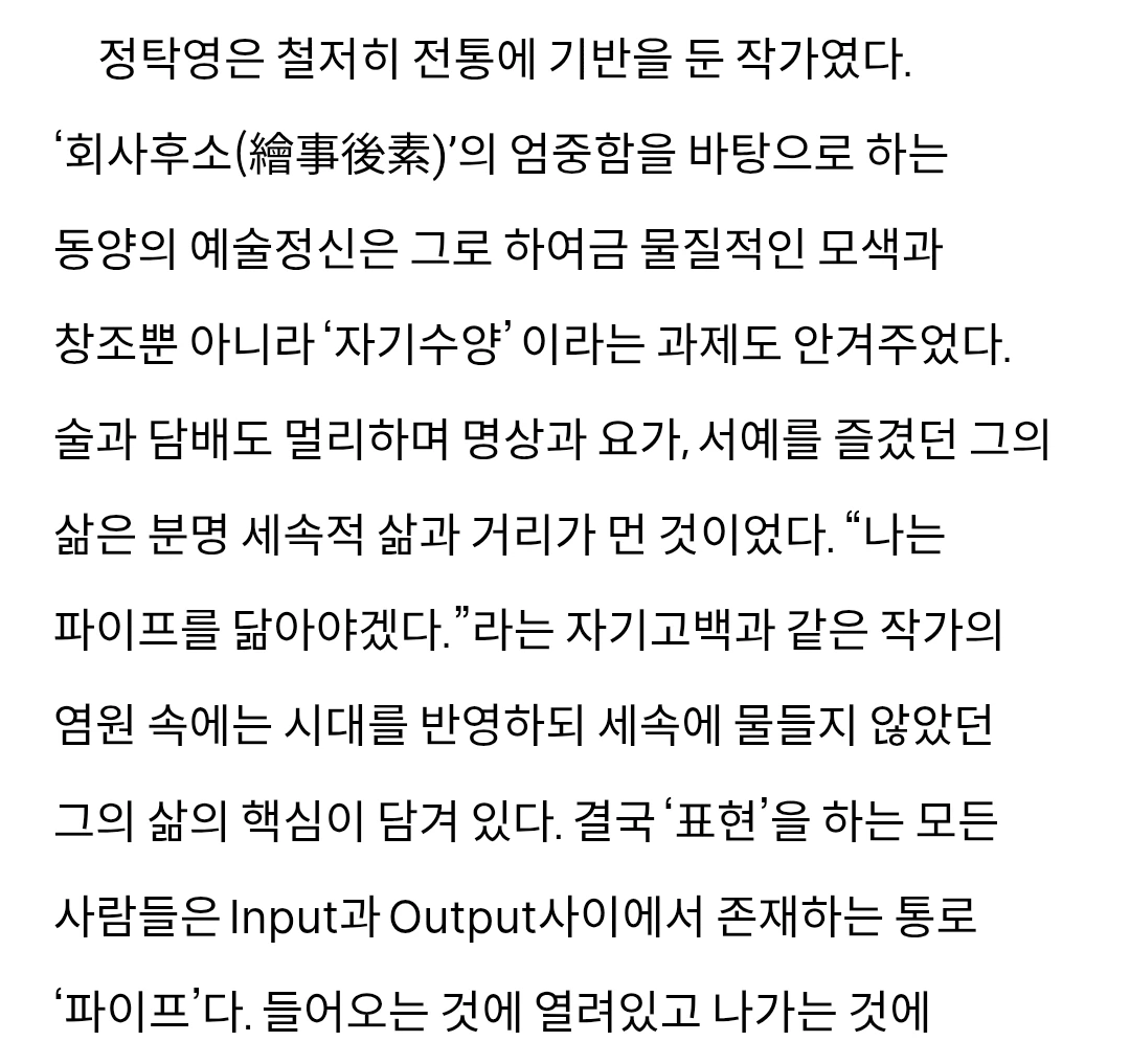 정창섭 선생님의 작품을 보면 이 문장이 떠오르죠. '가장 한국적인 게 가장 세계적이다. '
