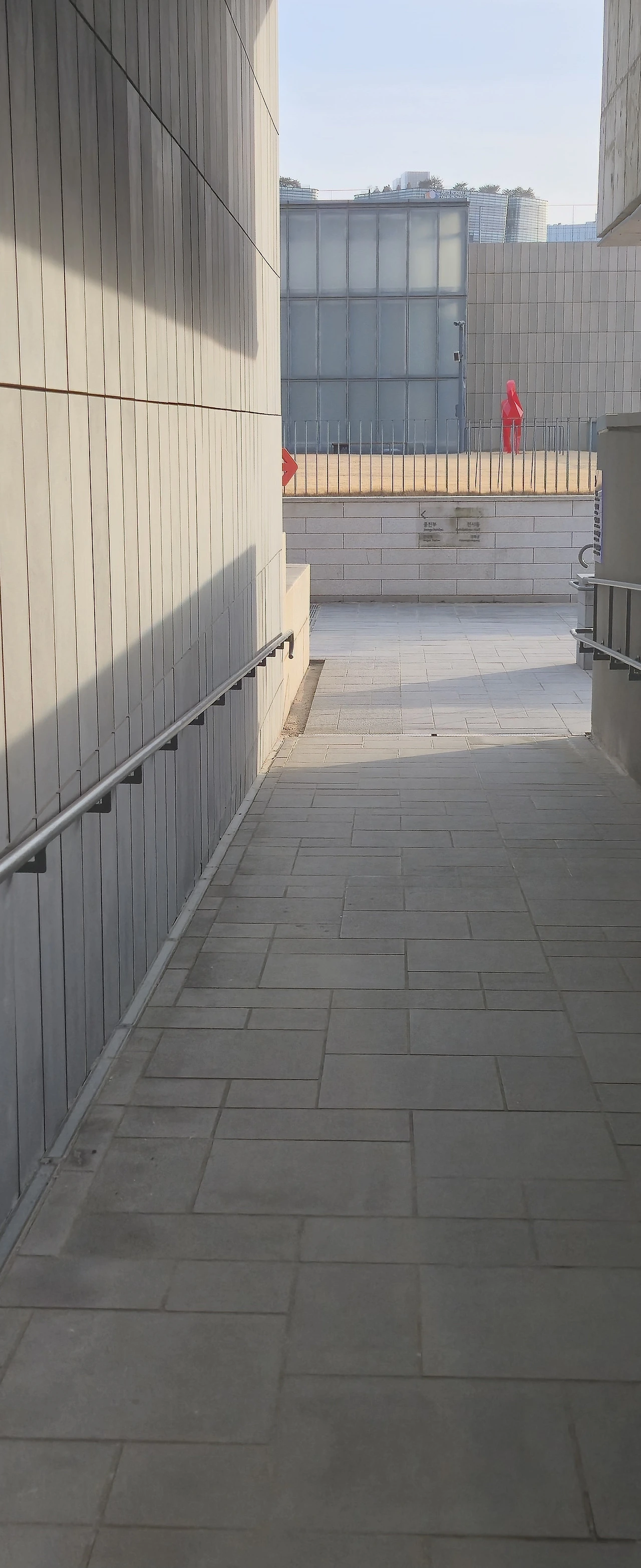 저는 이 위의 지점부터 전시장까지의 도달 과정이 일종의 의식이라고 생각해요. 천천히 걸어가다 보면 전시장 입구까지 가게 되지요.