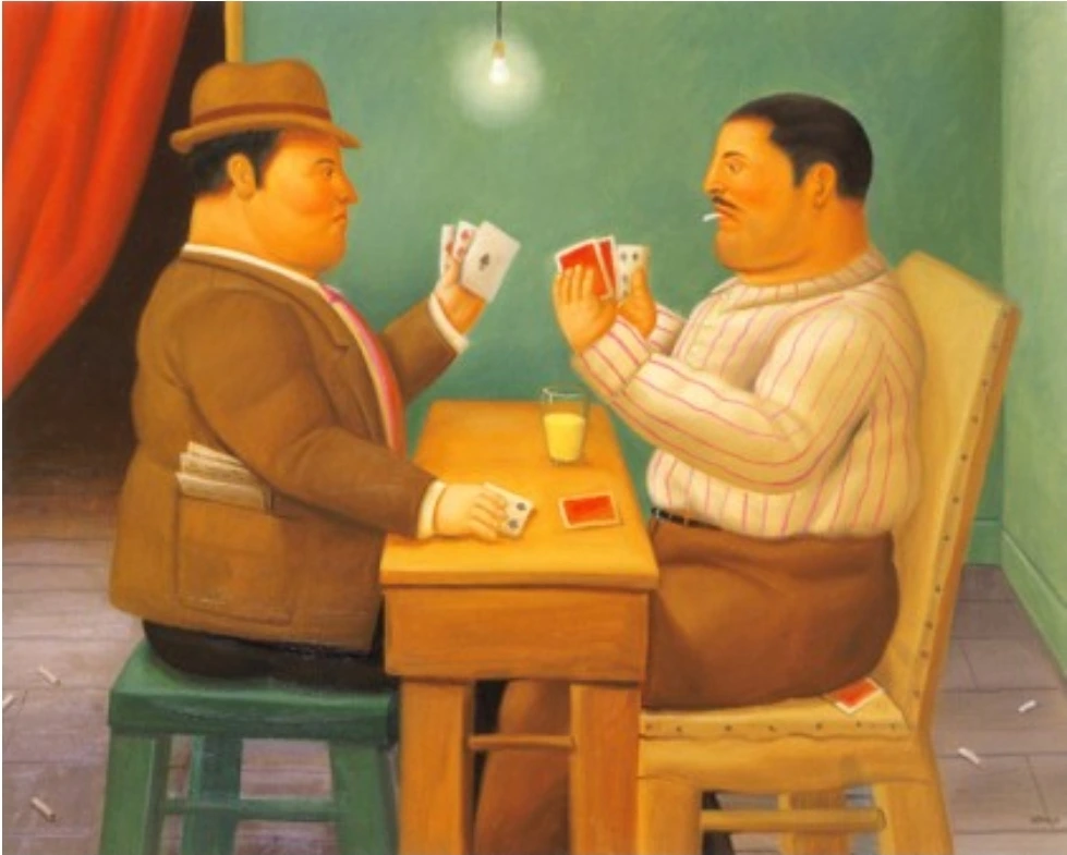 페르난도 볼테르(Fernando Botero Angulo1932-현재)는 콜롬비아에서 태어난 현존하는 작가 중 가장 비싼 그림을 제작하는 화가로 주로 패러디 작품 즉 고대부터 제작된 수'많은 명화들을 현대화시켜 사회의 모순에 대한 메시지를 풍자하는 화가로 유명하다. 그의 작품을 지금껏 마주하지 않은 이는 많지 않을 것이라 생각한다. 위에서 언급한 그림 또한 세잔의 그림을 모티브 한 그림이다
