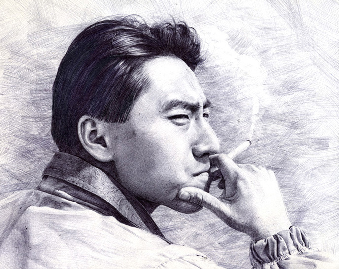 작가는 볼펜 스케치를 즐겨한다. 어린 시절부터 가장 사랑하는 그림 도구가 바로 흰색의 기둥에 검은 머리를 가진 모나미 볼펜이다. 볼펜이란 종류 또한 지금은 매우 다양하다. 그러나 작가에게 모나미 볼펜이란 어린 시절의 향수와 정서를 담고 있기에 매우 중요하다 하겠다. 작가는 자신을 표현하며 무엇을 들여다보았을까? 그리고 자신에게 중요한 것이 무엇인가? 하는 미시사적 사유를 이끌도록 깊은 심연의 힘을 자아내고 있다. 젊은 시절의 고뇌 그리고 인생에 대해 뜻모를 진지함을 가진 그런 시절이 누구에게나 존재할 것이다. 그는 지금 담배를 물고는 인상을 찡그린 채 어딘가를 응시하고 있다. 손가락에는 힘이 들어가 있어 턱 부분의 살갗은 눌려져 있는 모습이다. 깊이 빨아들인 저 담배 연기를 내뿜으며 그림 속의 작가는 하얗게 퍼져나가는 진한 담배 연기와 함께 세상으로 무엇을 뱉어냈을까 하는 궁금증을 자아내게 한다. 작가는 제임스 밀런(영국의 스케치 작가)에게서 많은 영감을 받았다고 말한다. 자화상은 단순한 선을 이용하여 그림을 그렸음에도 불구하고 많은 것을 담고 있다. 작가가 담은 것이 무엇이든 우리는 그림을 바라보며 공허하면서도 그로테스크한 삶의 이면을 느끼도록다시 한번 삶을 반추하는 기회를 부여하고 있다.