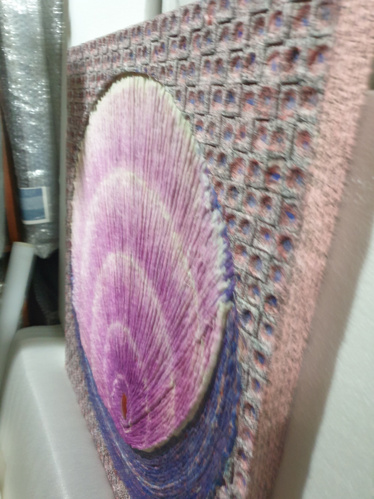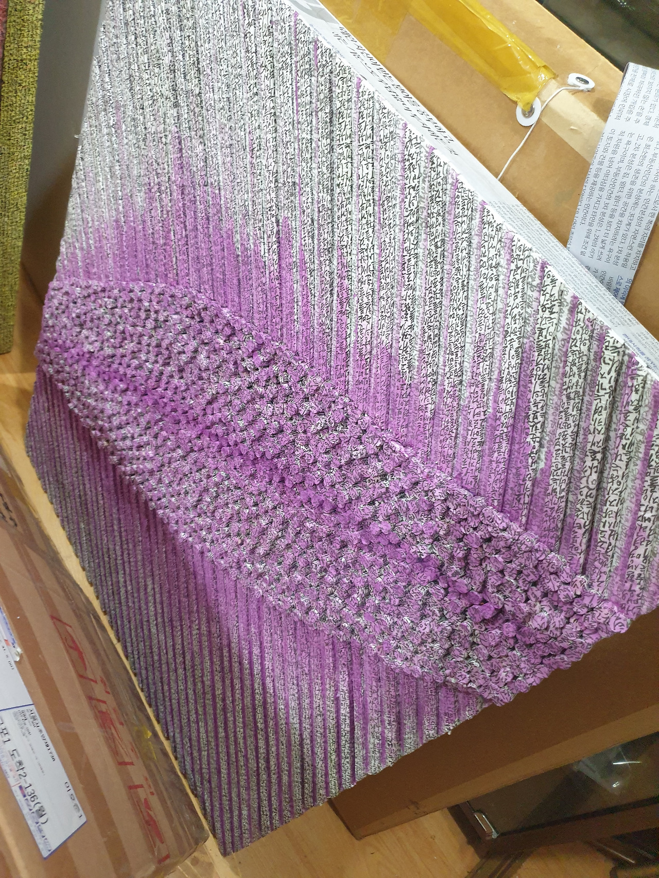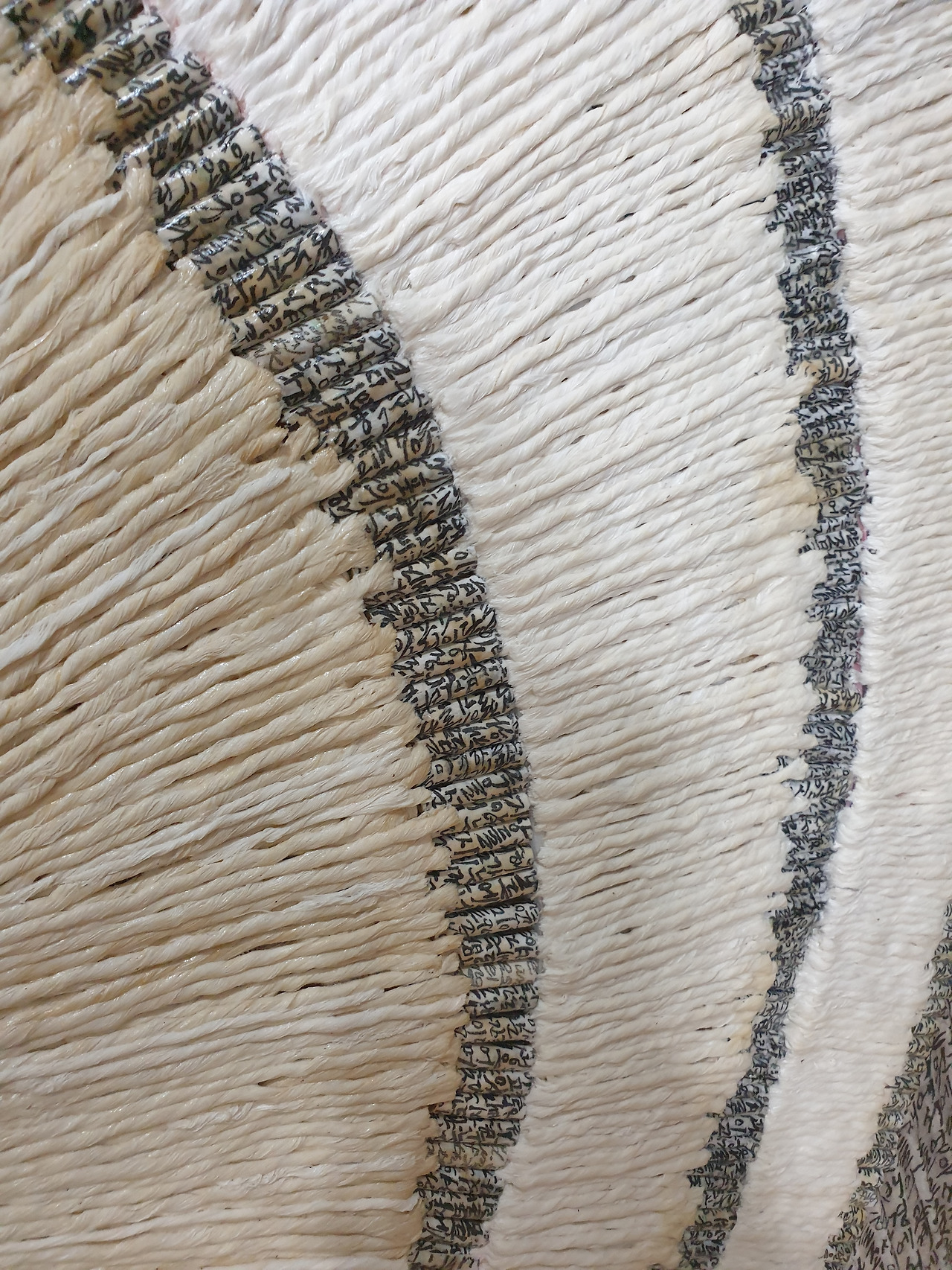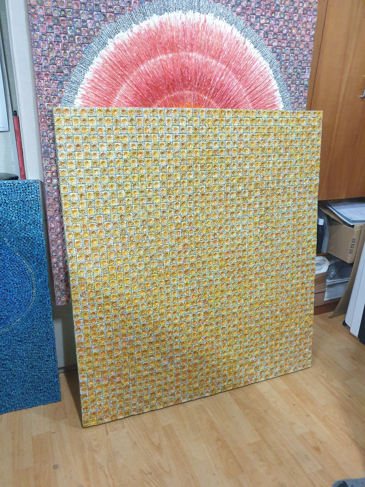 채색한 한지에 직접 손으로 작품에 맞는 글을 쓴 후 그것을 다시 말아 높낮이가 다르게 풀로 붙인다.그리고 그 위에 특수물질을 발라 제작한 작품들이다.