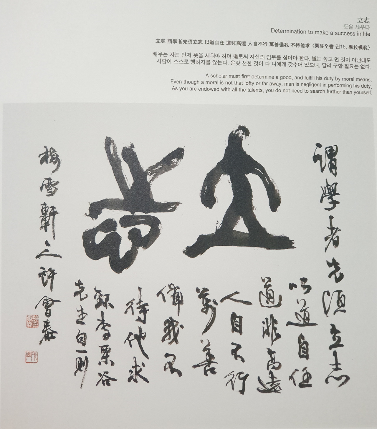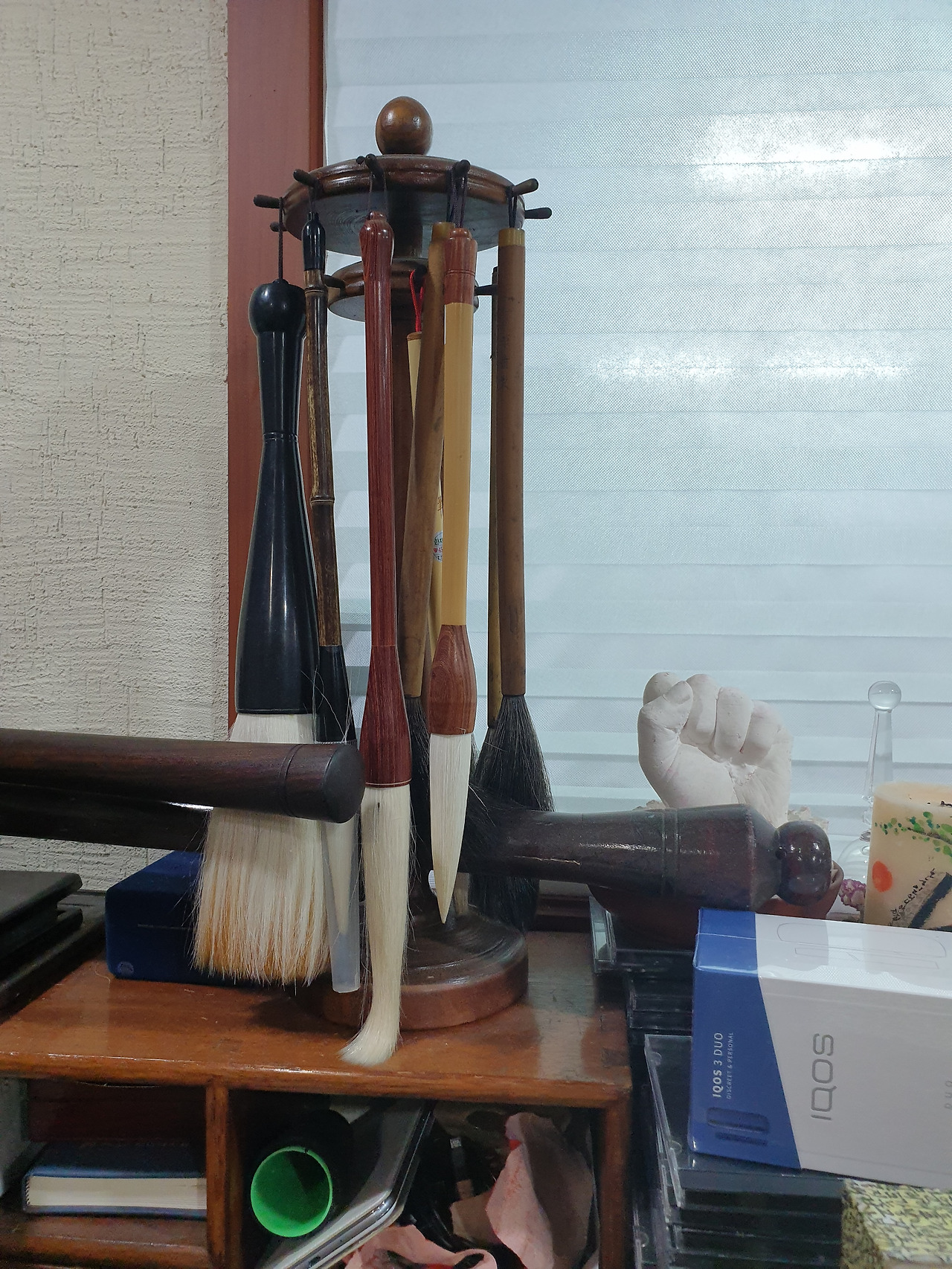 붓의 크기와 무게는 일반적으로 가늠하기 힘들정도로 길고 무거웠다. 그 무거운 붓으로 단숨에 내려쓰는 글에는 작가의 온 몸의 氣와 혼이 담겨 있는 글이 탄생하게 되는 것이다.