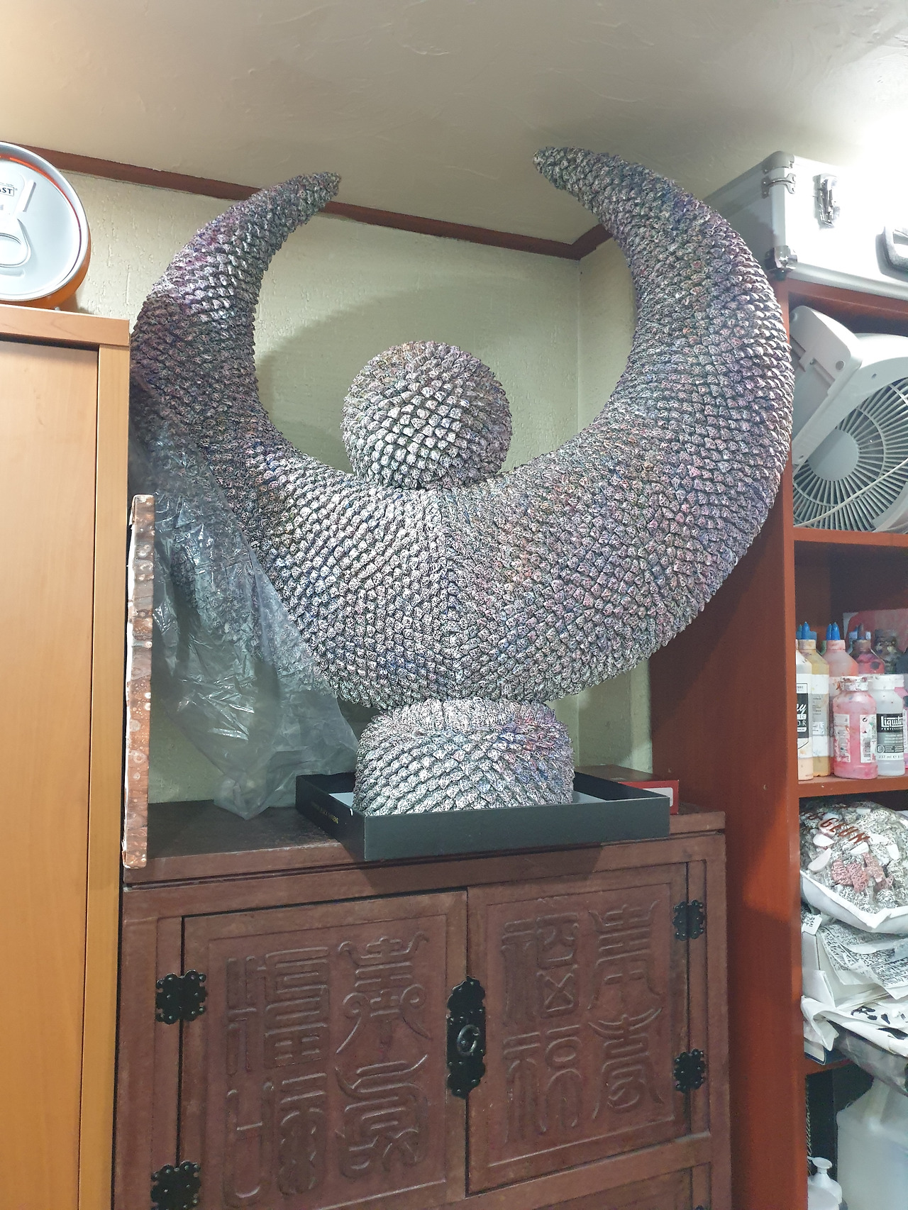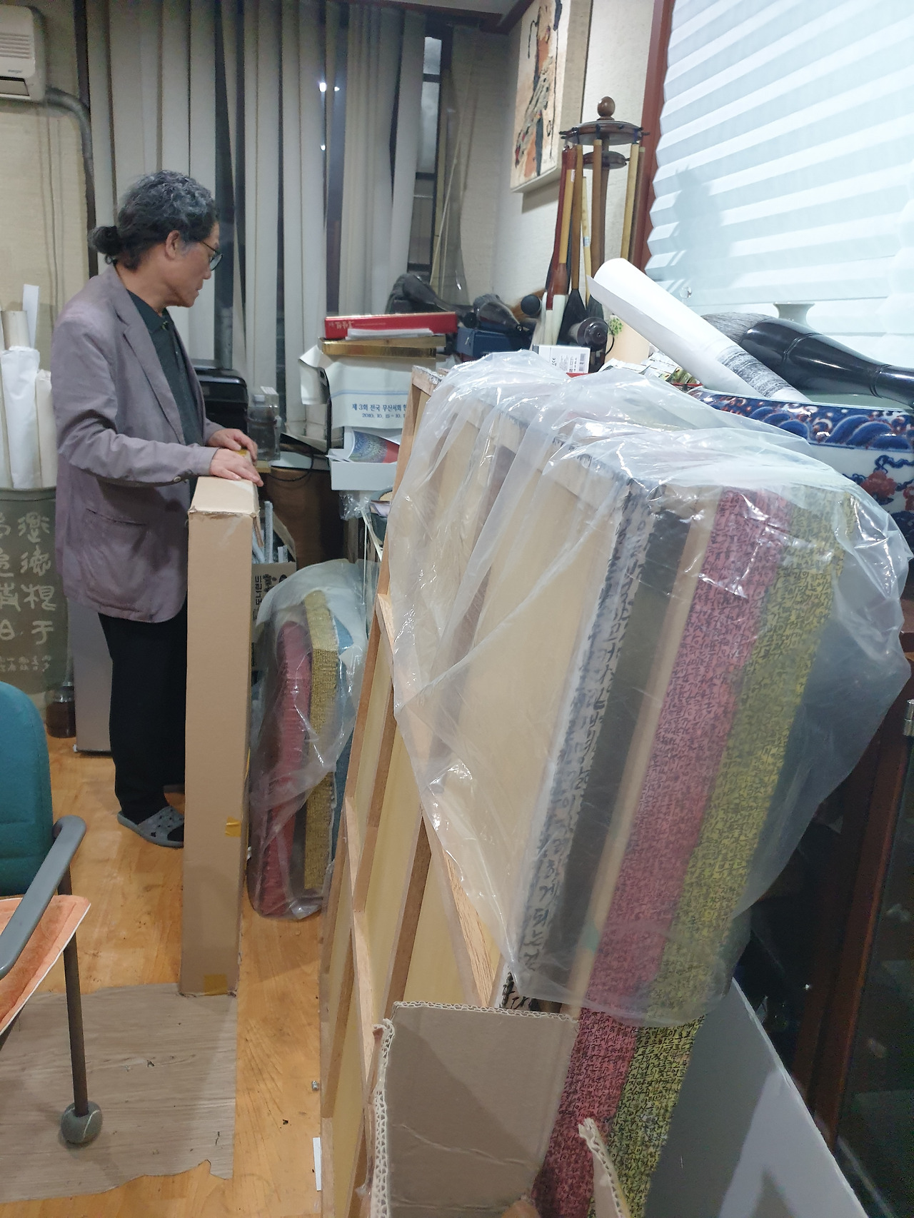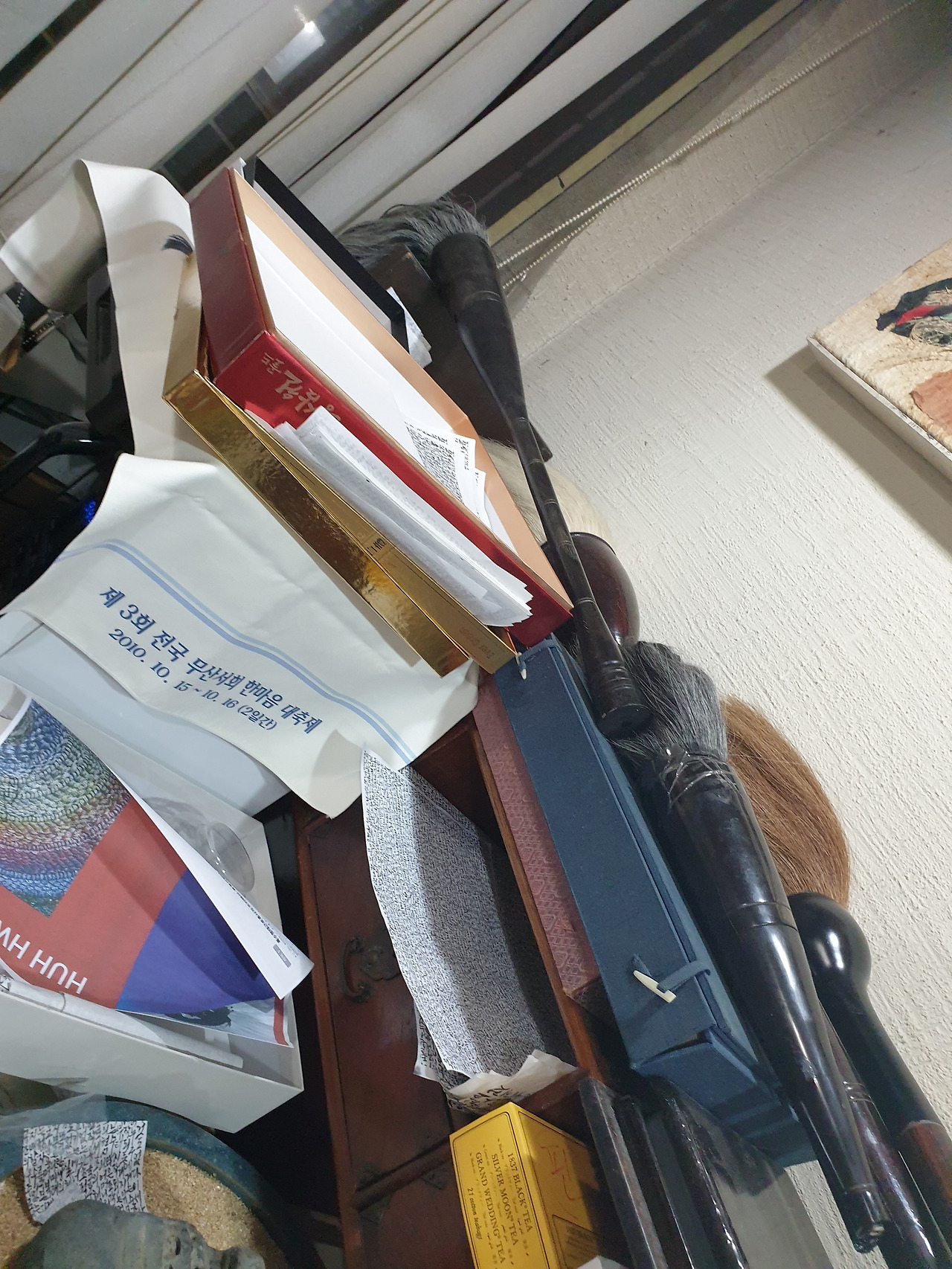 선생님께서는 자본의 힘에 흔들려 자신의 색을 잃고 있는 작가들이 많아진 세상에 대한 안타까움이 가장 마음 아프다고 하신다. 기울이던 소주 잔과 함께 장자(내가 좋아하는 철학서이건만 선생님도 좋아하셔서)에 대해 논한 뒤 찾아간 먹내가 가득한 작업실에서 마시던 따듯한 커피는 달콤했다. 그리고 현재 가지고 있는 작품들을 하나씩 꺼내어 그 작품이 가지고 있는 특징에 대해 섬세하게 설명해 주셨다.