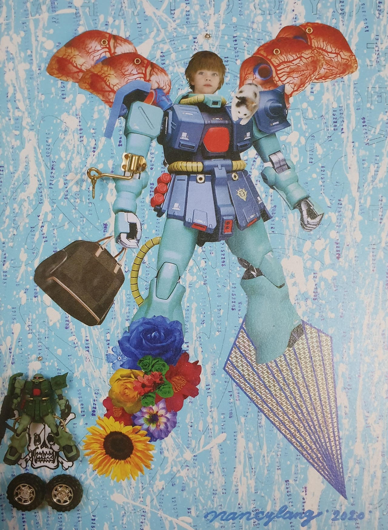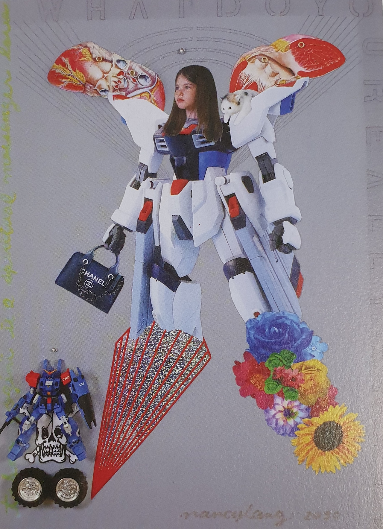 낸시 랭은 말한다. "작업을 하기 위한 준비는 너무도 즐거워요 하지만 그 자료들을 이어 붙이고 구도를 생각하며 하나의 완성된 작품으로 생명을 부여하는 것이 가장 어려워요. 생명을 탄생시키는 일이며 쪼개진 개체와 쓸모 없어진 것들에게 새로운 생명을 부여하기 때문이죠. 저의 손에 의해 그 생명의 의미와 존재가 달라지잖아요."